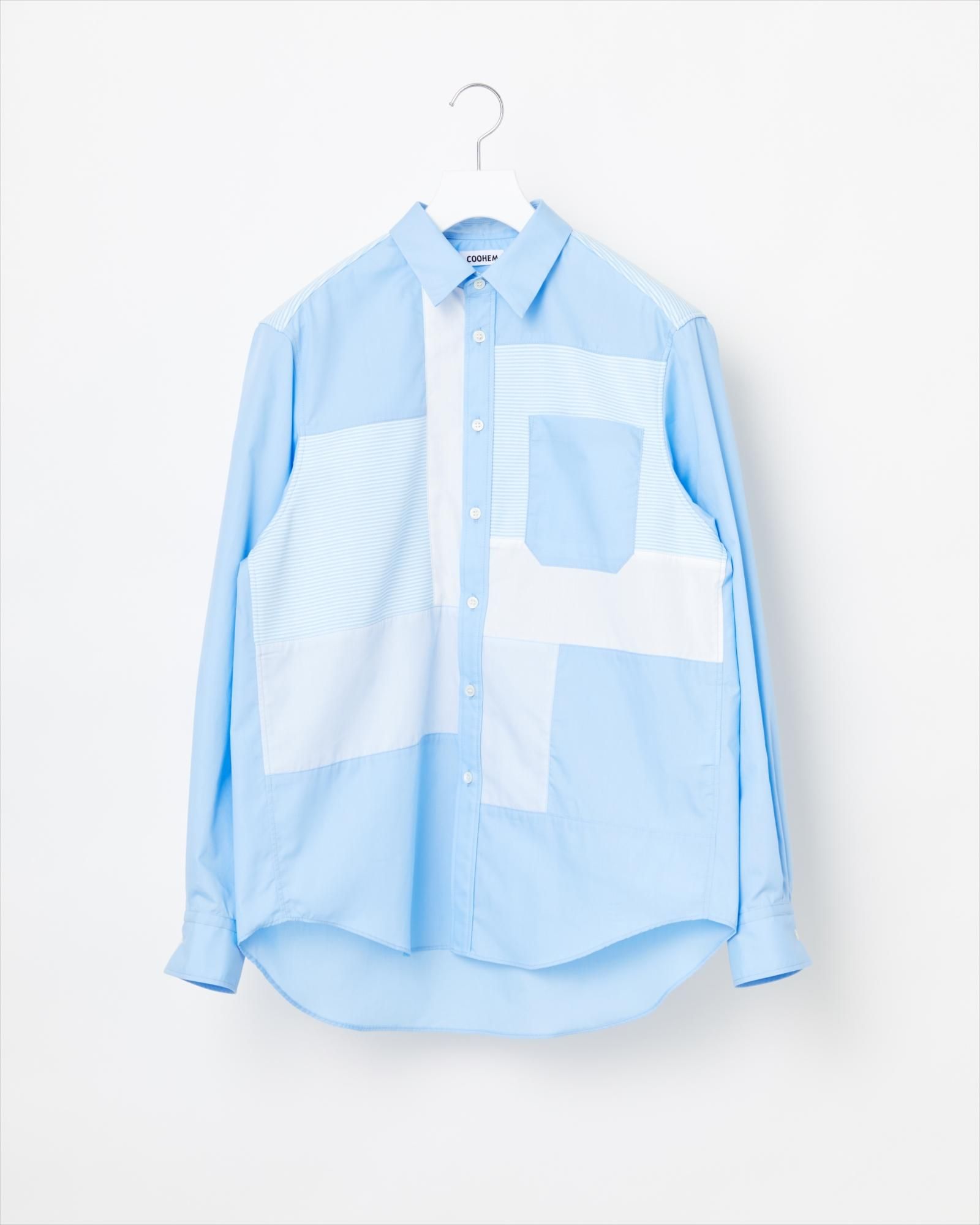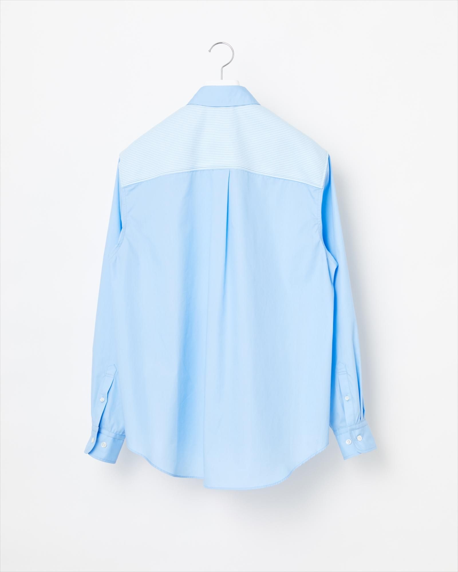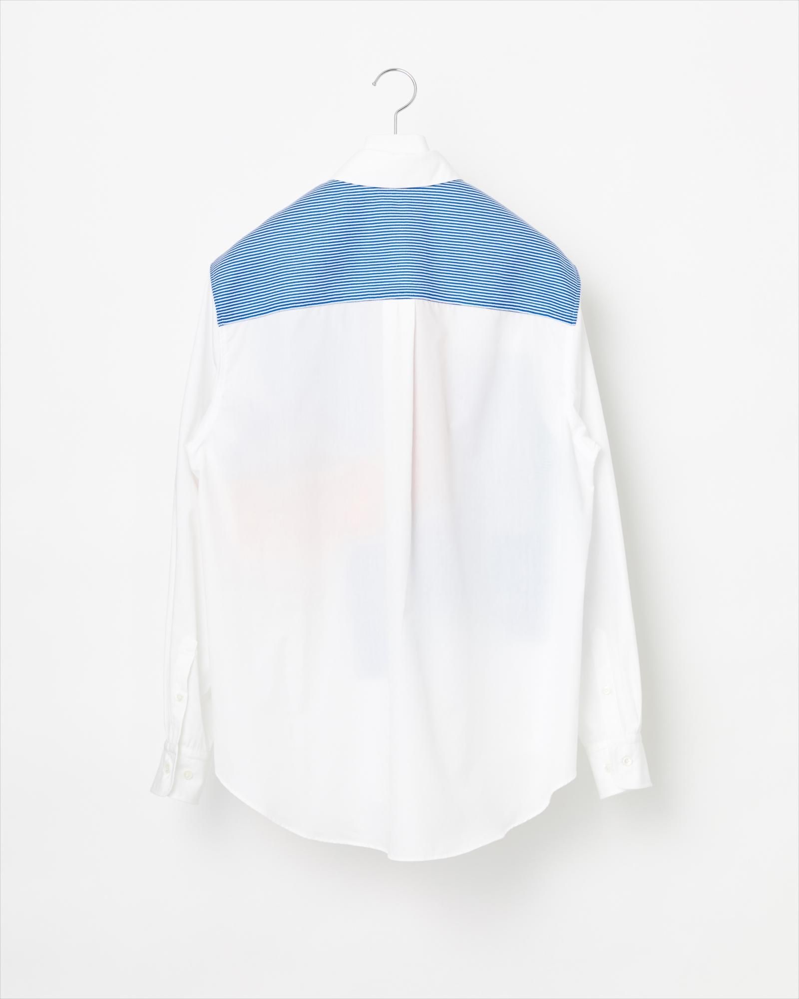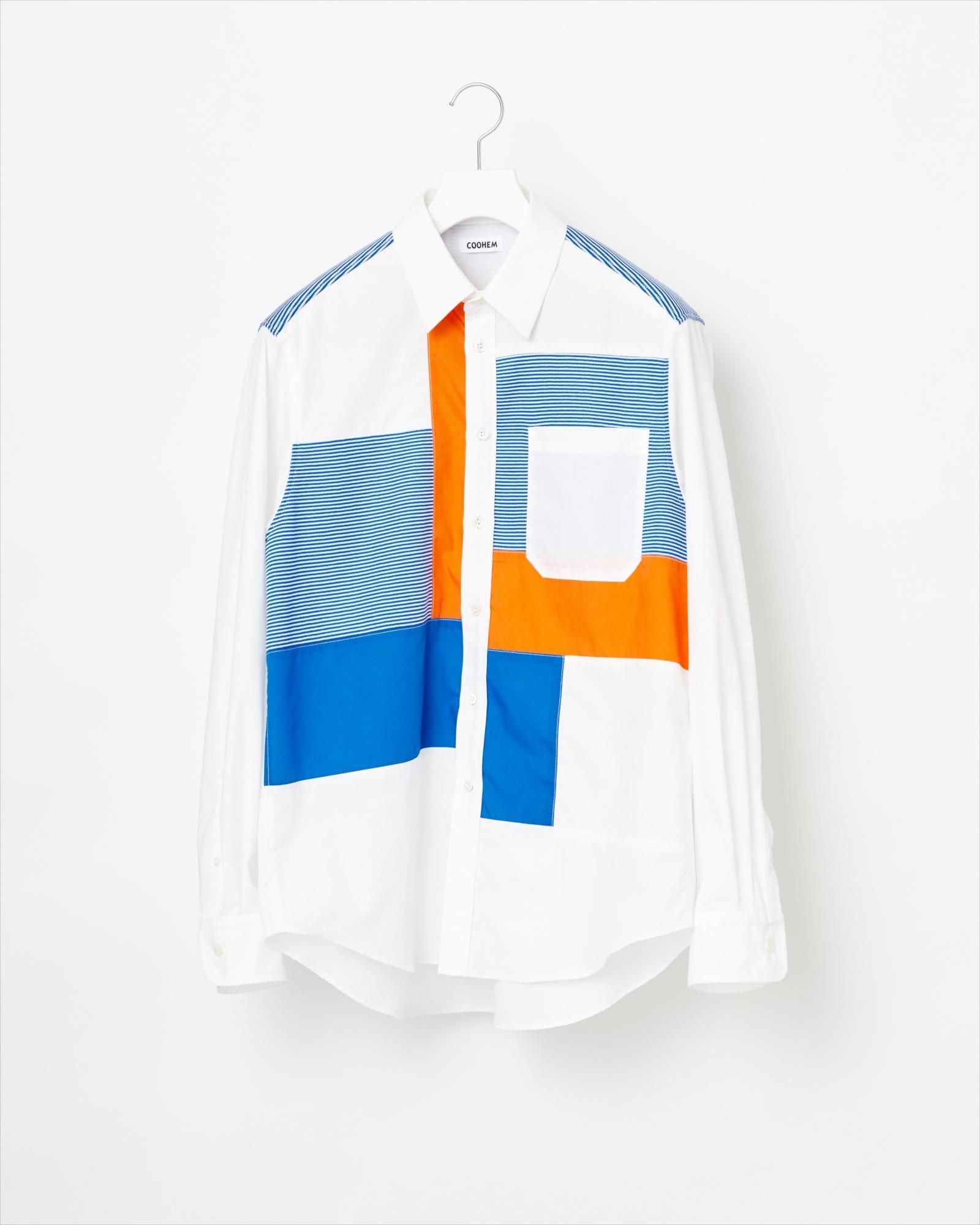 ニットと布帛をクレイジーパターンに組み合わせたシャツアイテム。今季はマイクロボーダーの編み地を使用しています。ベースの布帛は綿ポリエステルのミックス生地を採用。ハリがあり、綿100%のものに比べシワになりにくい素材です。ニットパーツはポリエステル100%の編み地を高圧熱プレスによってさらにフラットな表面に加工。スポーティな光沢感がアクセントになっています。メンズモデル身長 175cm、着用サイズ L。 その他の着用アイテム ; 13-222-024 / 14BLACK / L。