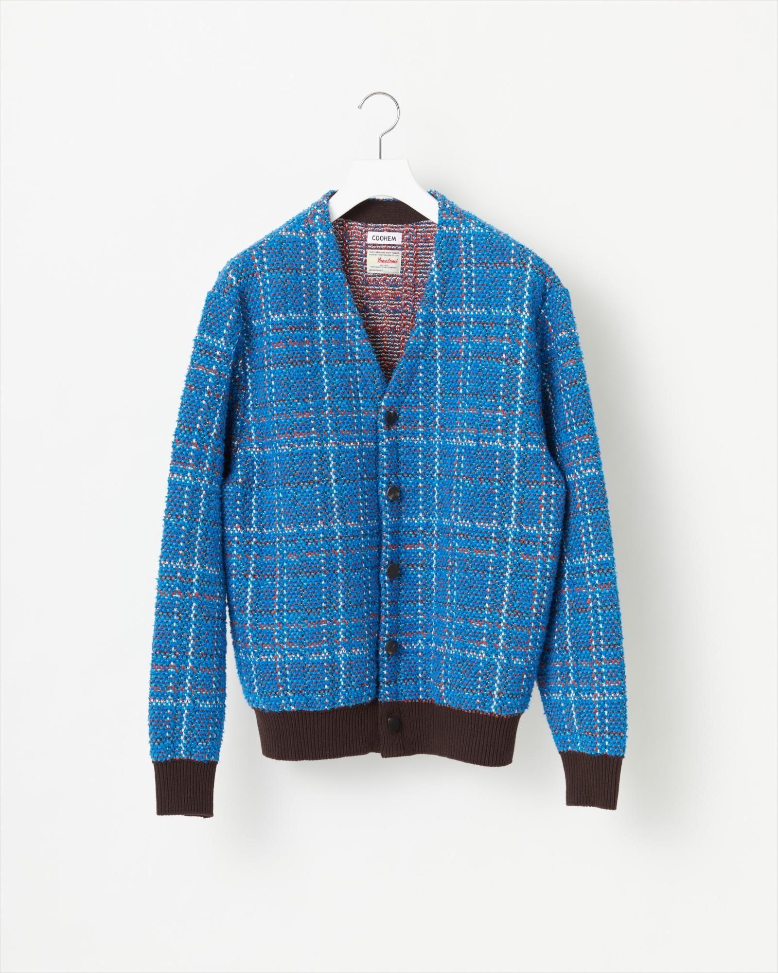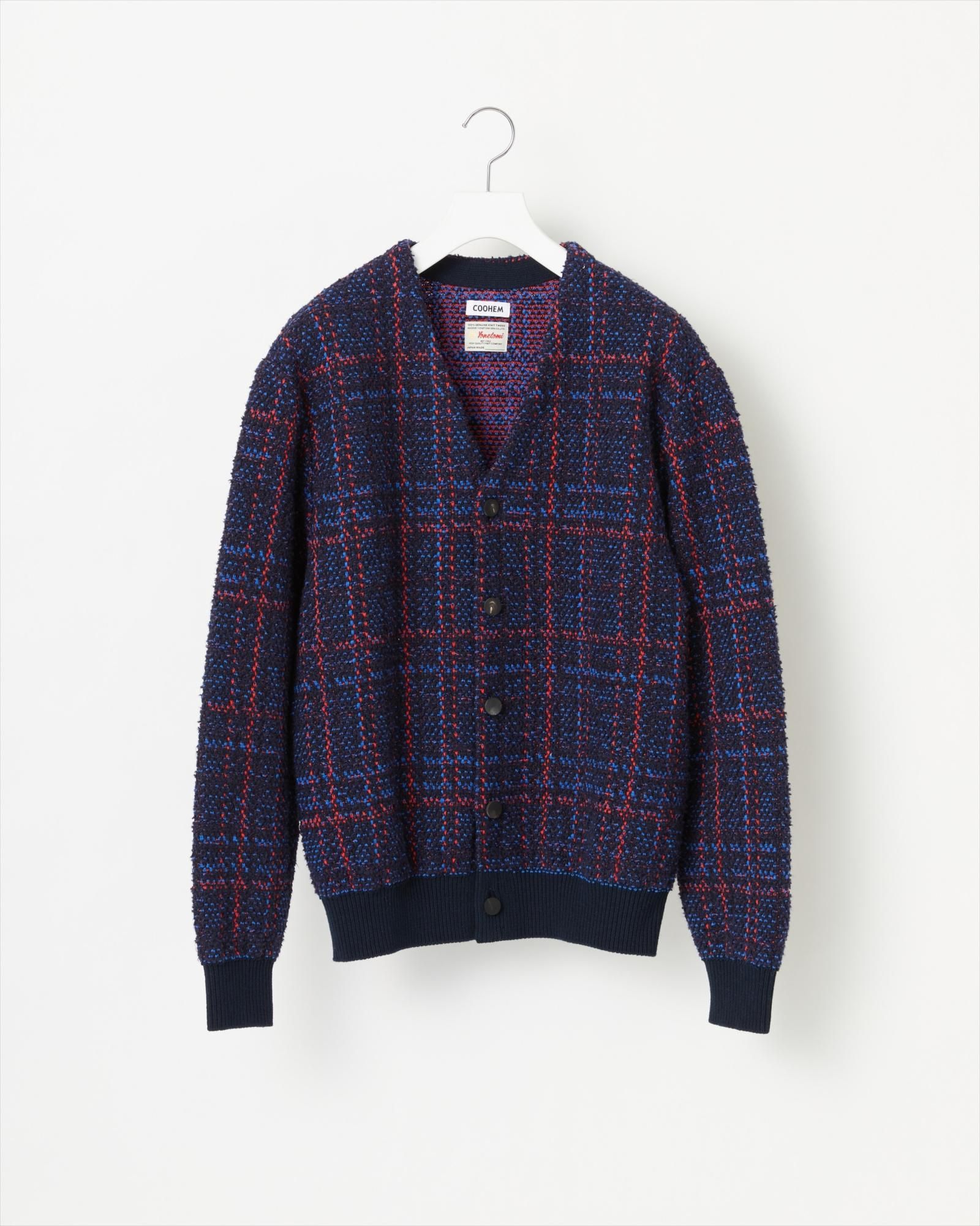 コットンベースの柔らかな風合いで、程よいカジュアルさをもつニットツウィードカーディガン。 適度にゆとりのあるシルエット、リブ部分はコットン100%の糸を使用しています。