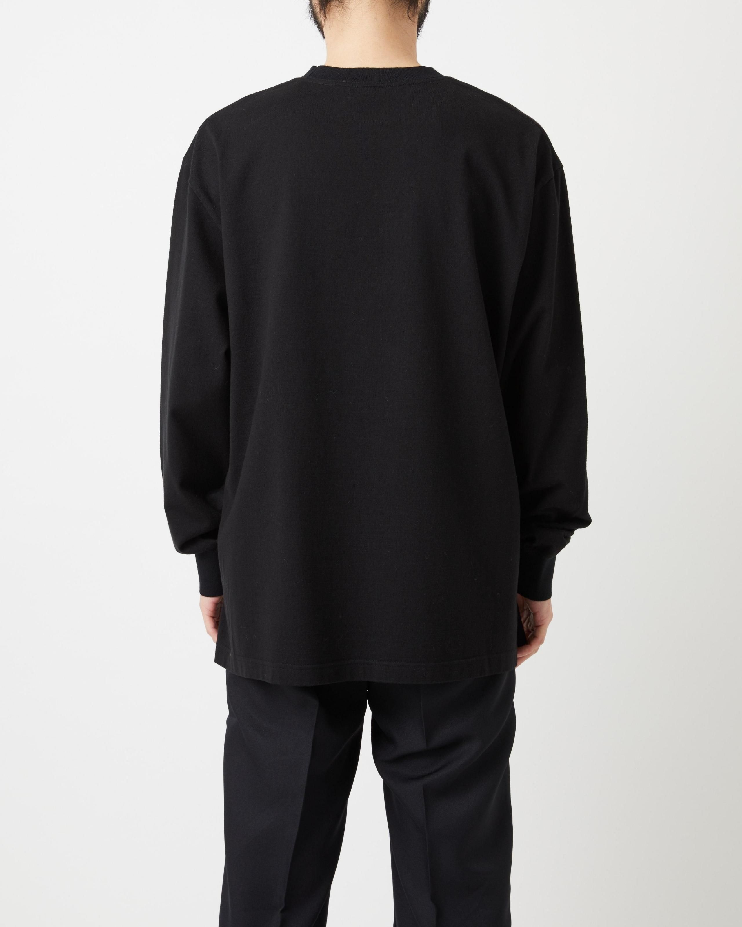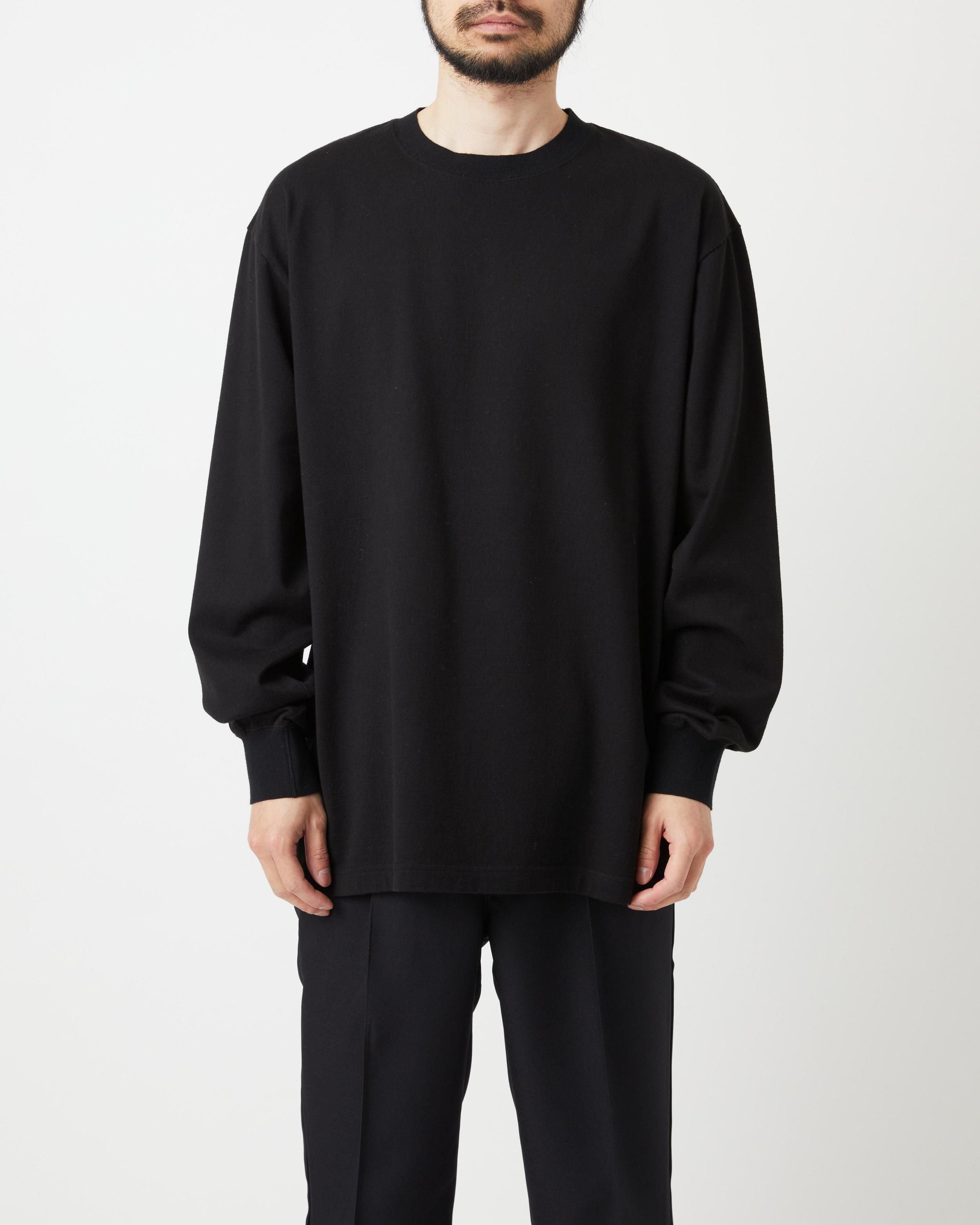 Yonetomi NEW BASIC T-SHIRTに長袖が新登場。 インナーとしてのTシャツは少し透ける、ヘビーウエイトだと厚みがあってインナーとの兼用ができない。目指したのは、そうした悩みを解決した「ちょうどいい」1枚。 衿・袖口はニット、ボディは生地がドッキングしたリブ部分が伸びにくい仕様です。