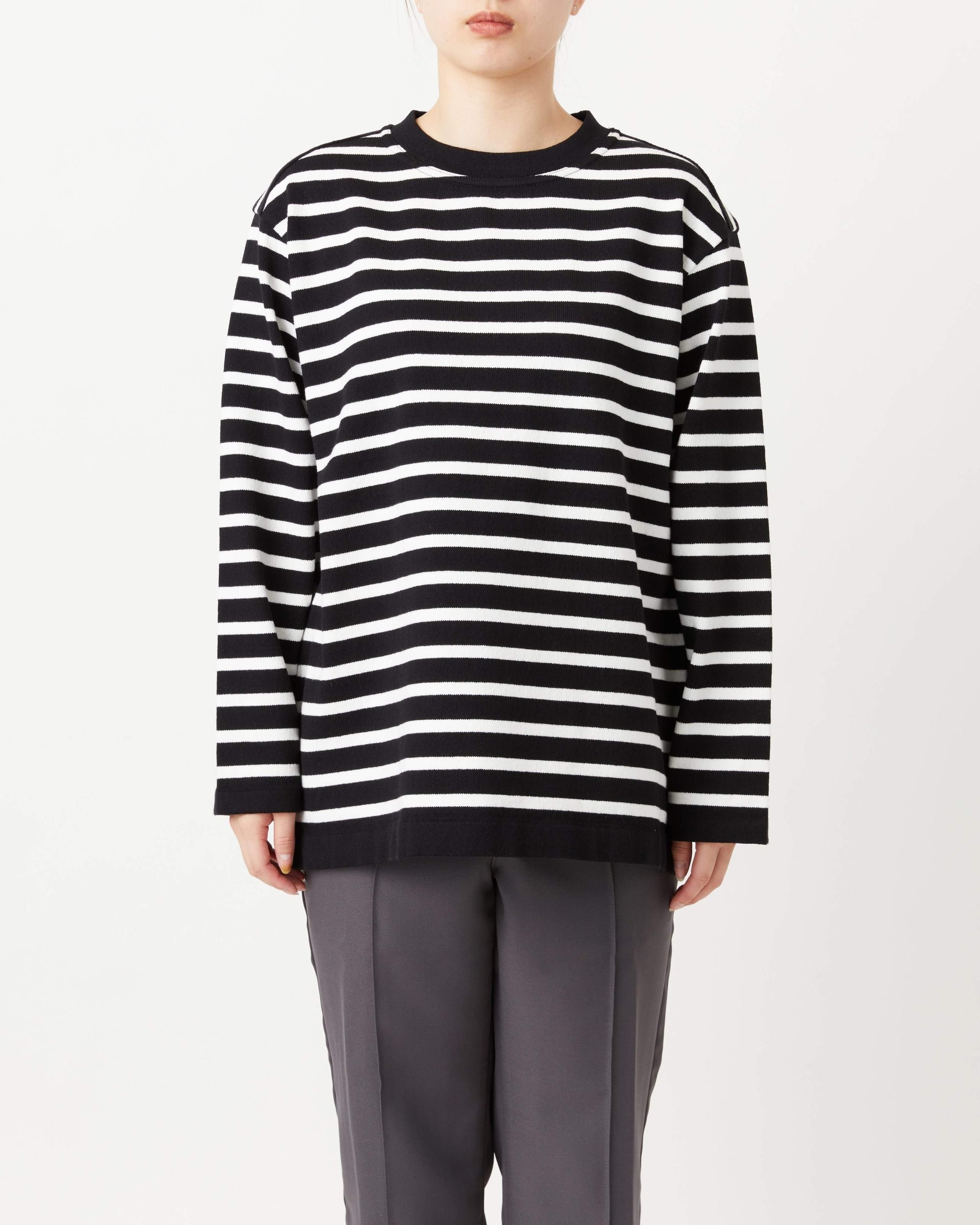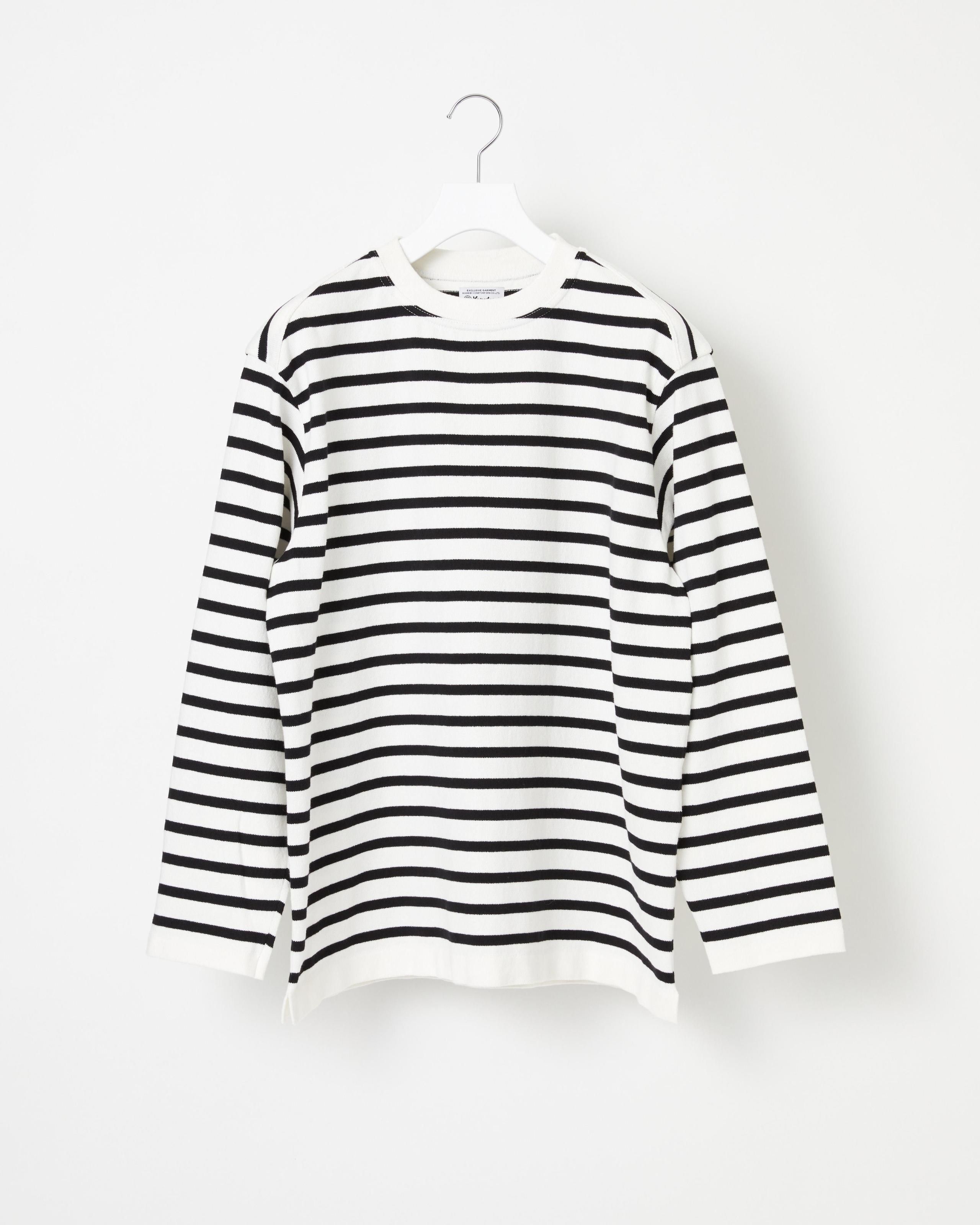 フランスの漁師の作業着をルーツに持つバスクシャツをニット技術で表現しました。 上品なニット素材で、伸縮性がある快適な着心地。ネックラインはオーセンティックなボートネックに加え、汎用性の高いクルーの2種類を展開しています。