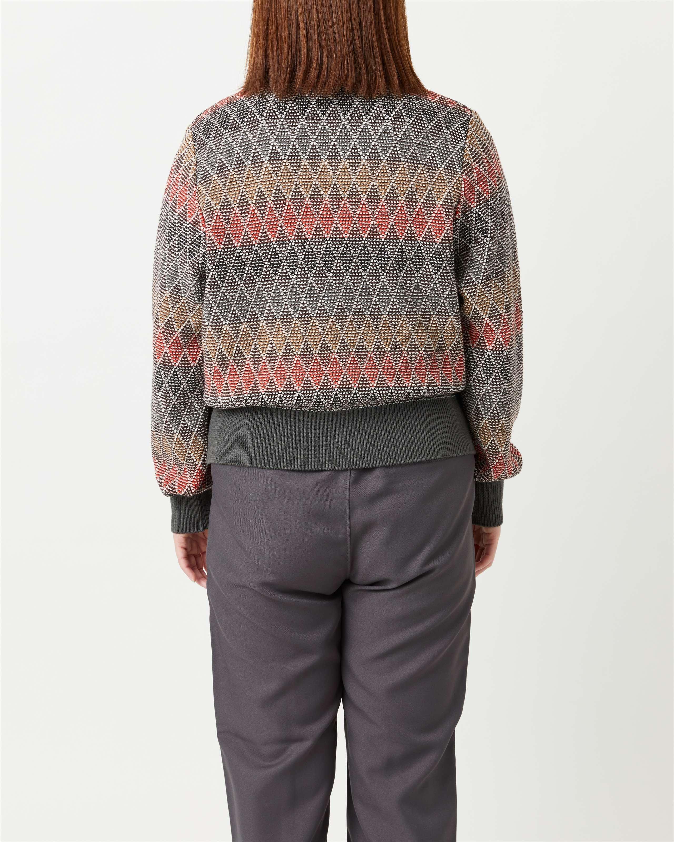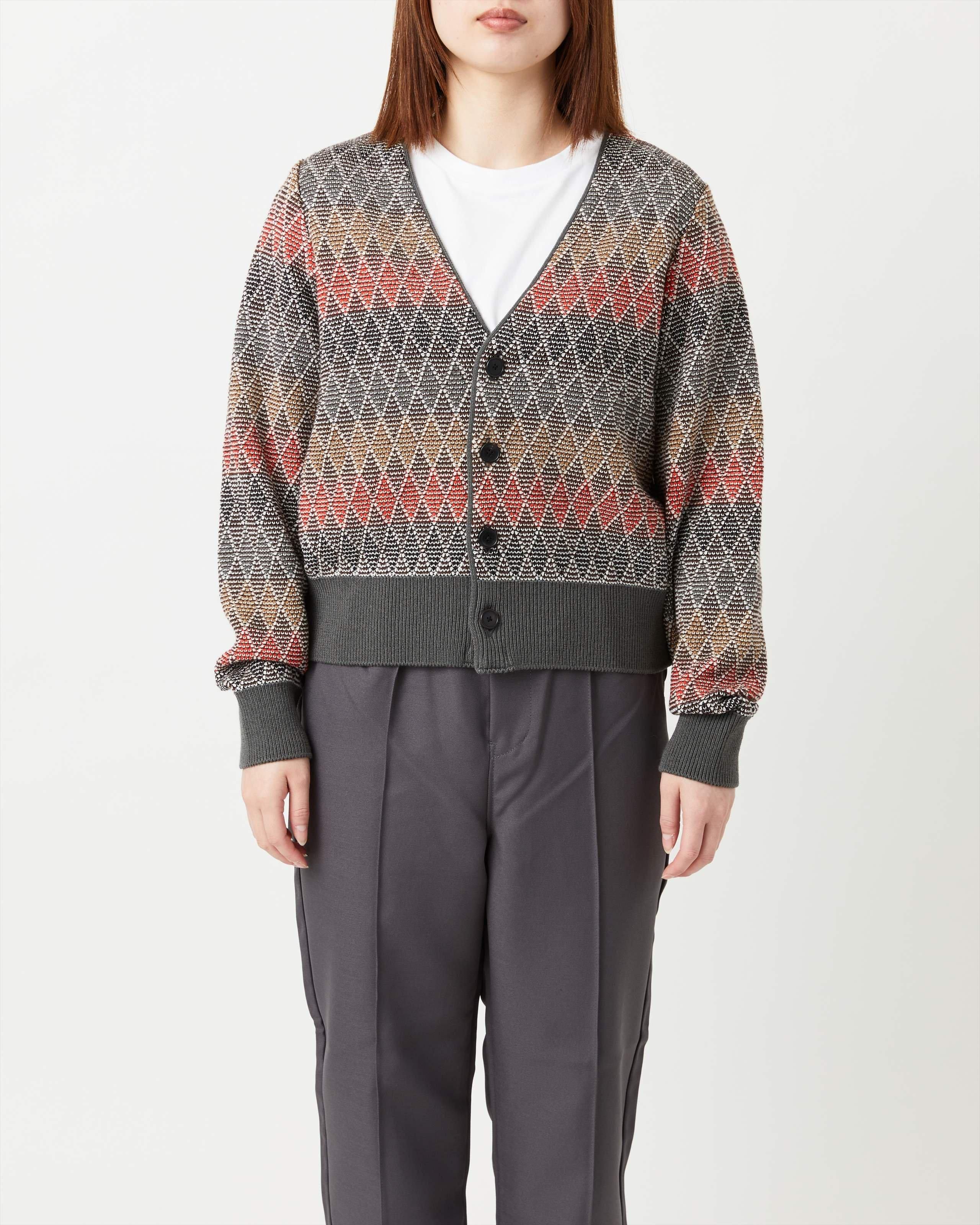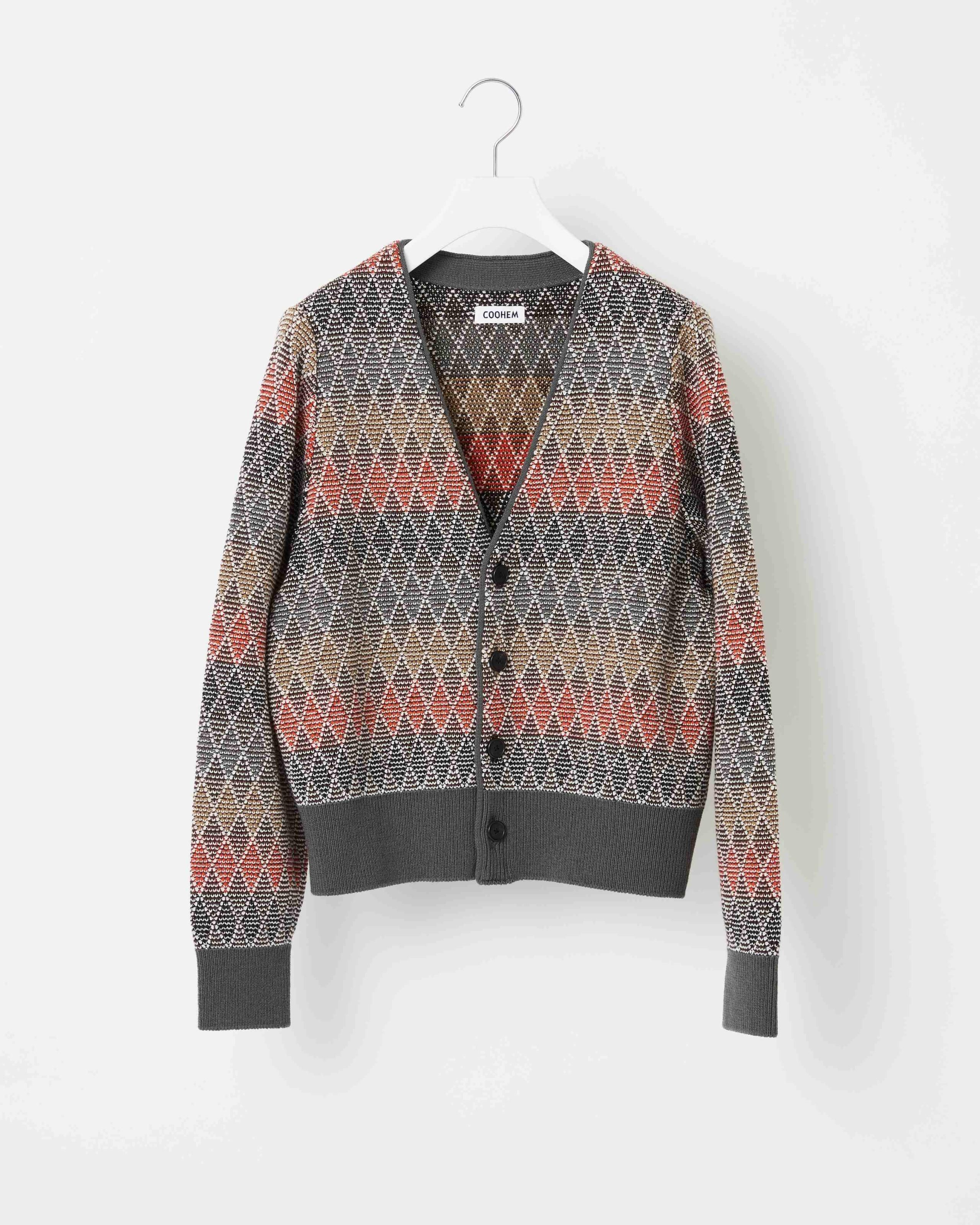 高品質の防縮ウールを使い、レトロなアーガイルパターンを表現。 リブ部分は滑らかでサラリとした風合い、身頃は伸縮性に優れ、ワッフル地の様な凹凸感が特徴です。