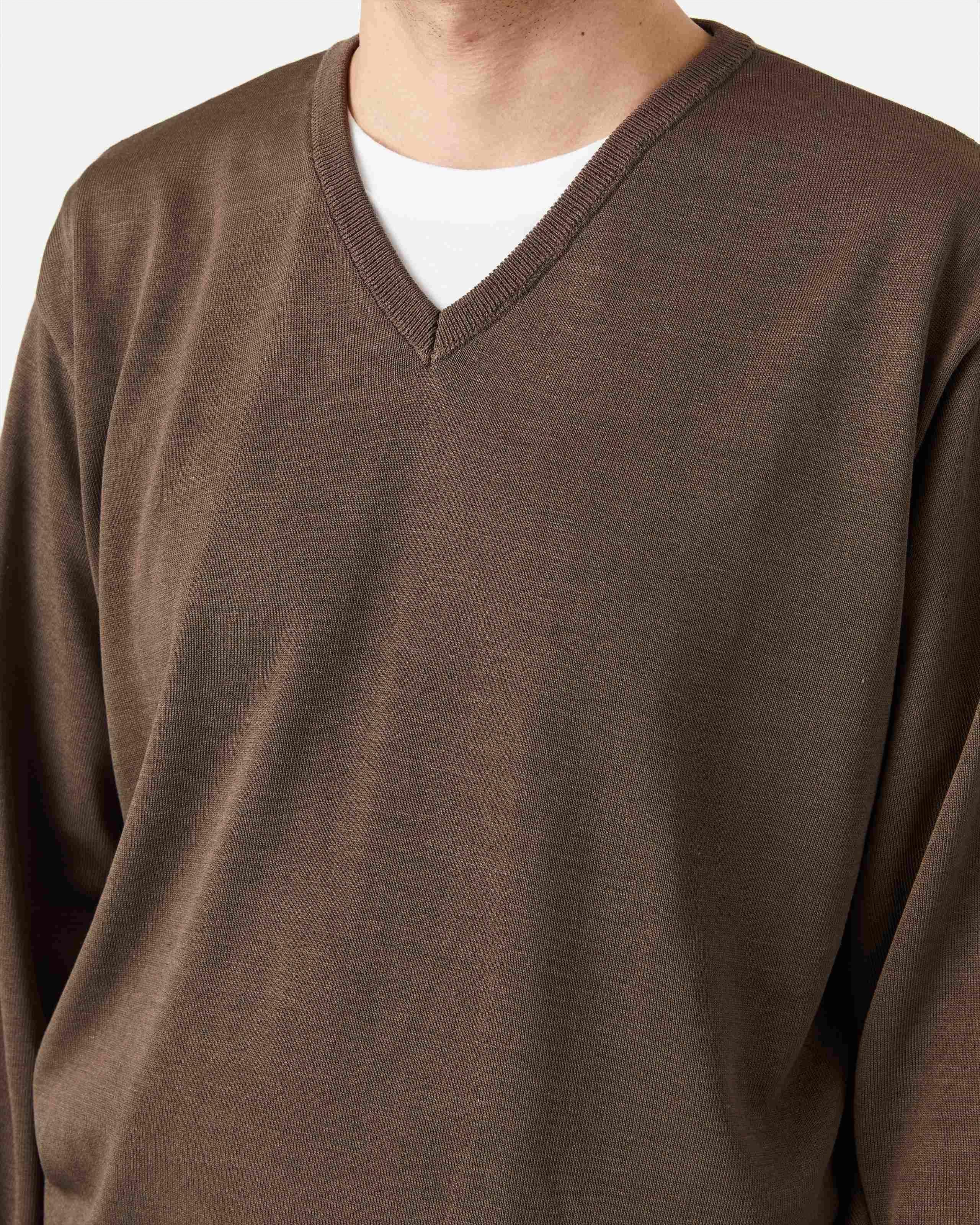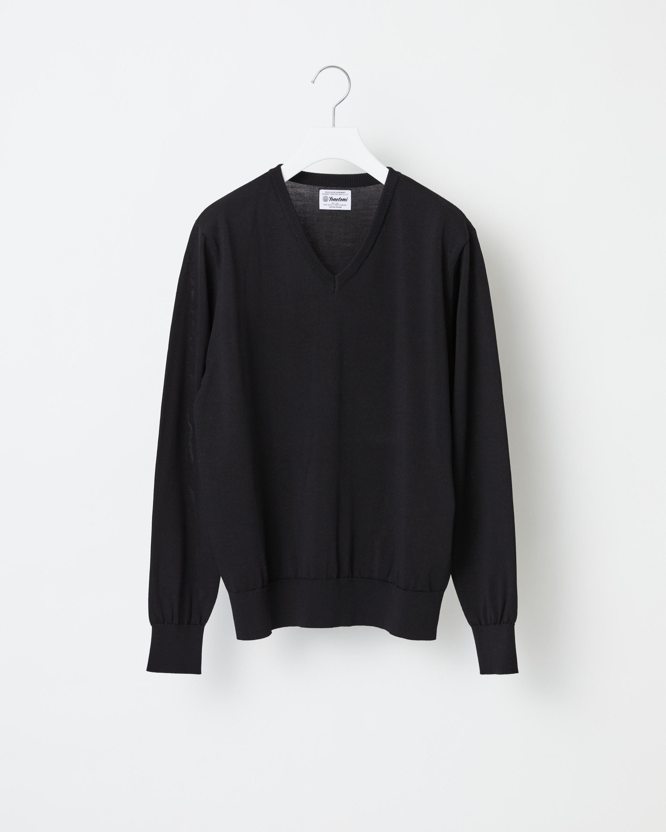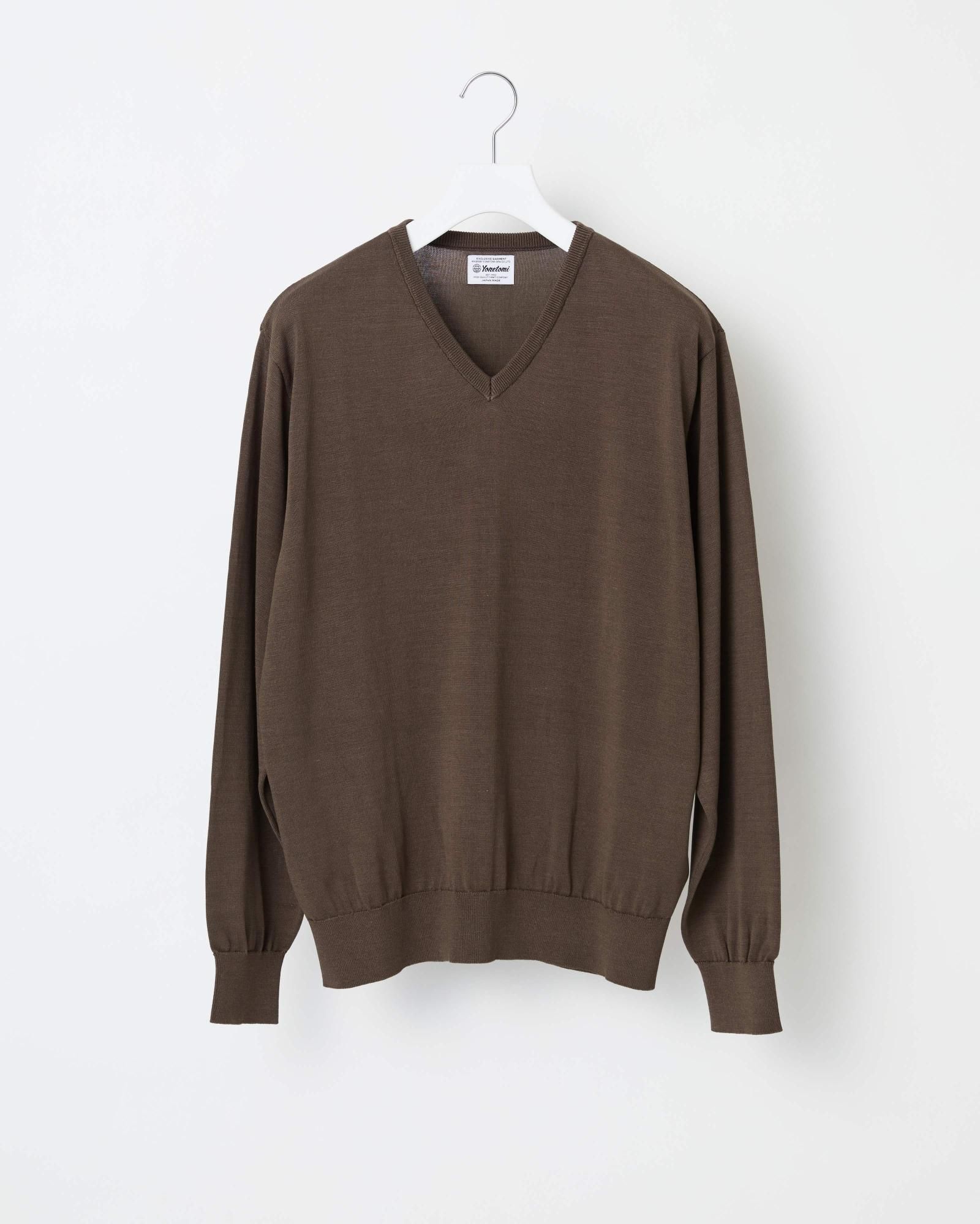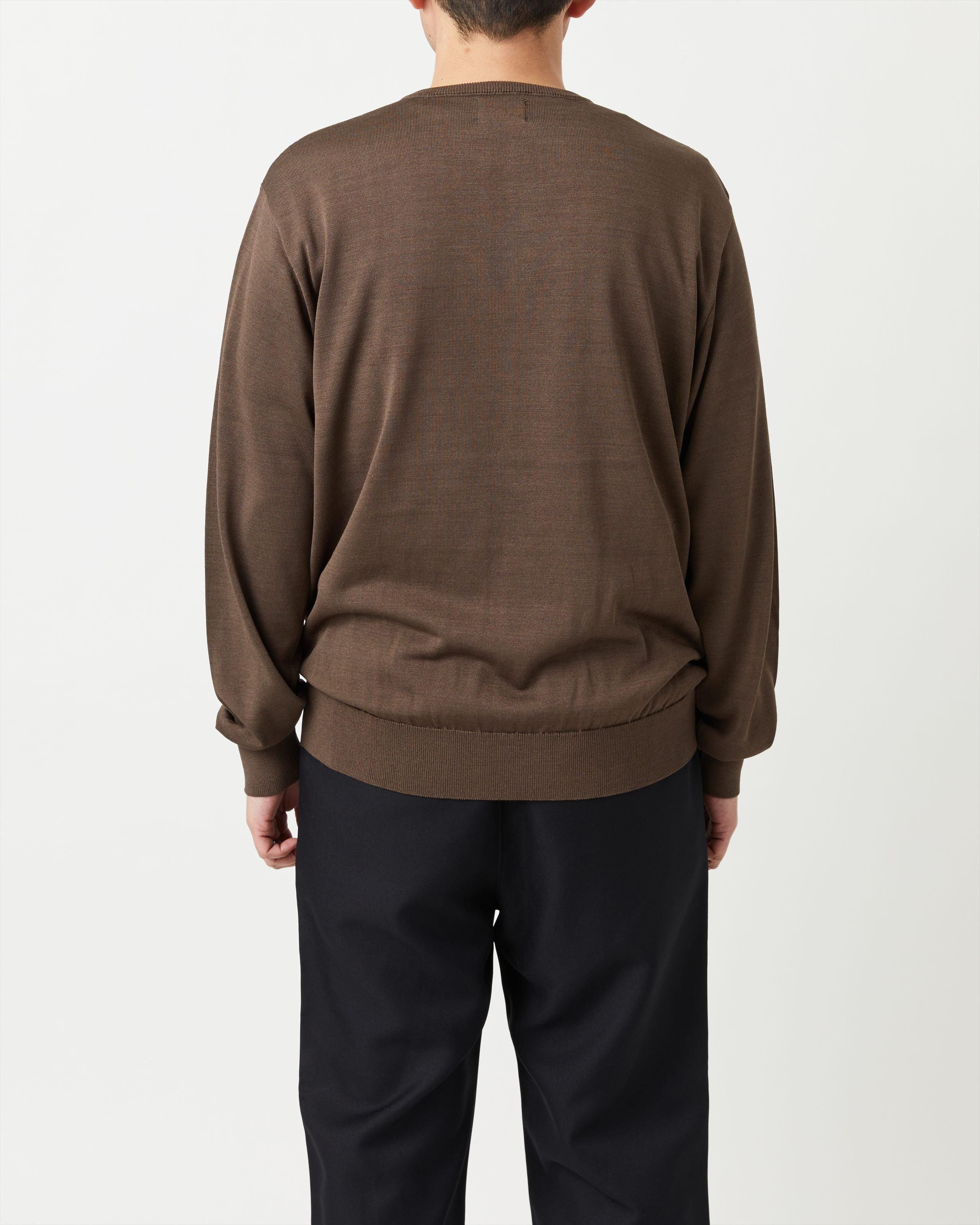 日本唯一のシルク紡績工場に別注した強撚糸を使用。シルクの上品な光沢と肌触り、落ち感が新感覚のニットプルオーバー。 糸を強く撚り度詰め編みすることによってヘビーウェイトな素材感になるため、手洗いによる洗濯処理ができ経年変化を楽しむことができることも特徴です。