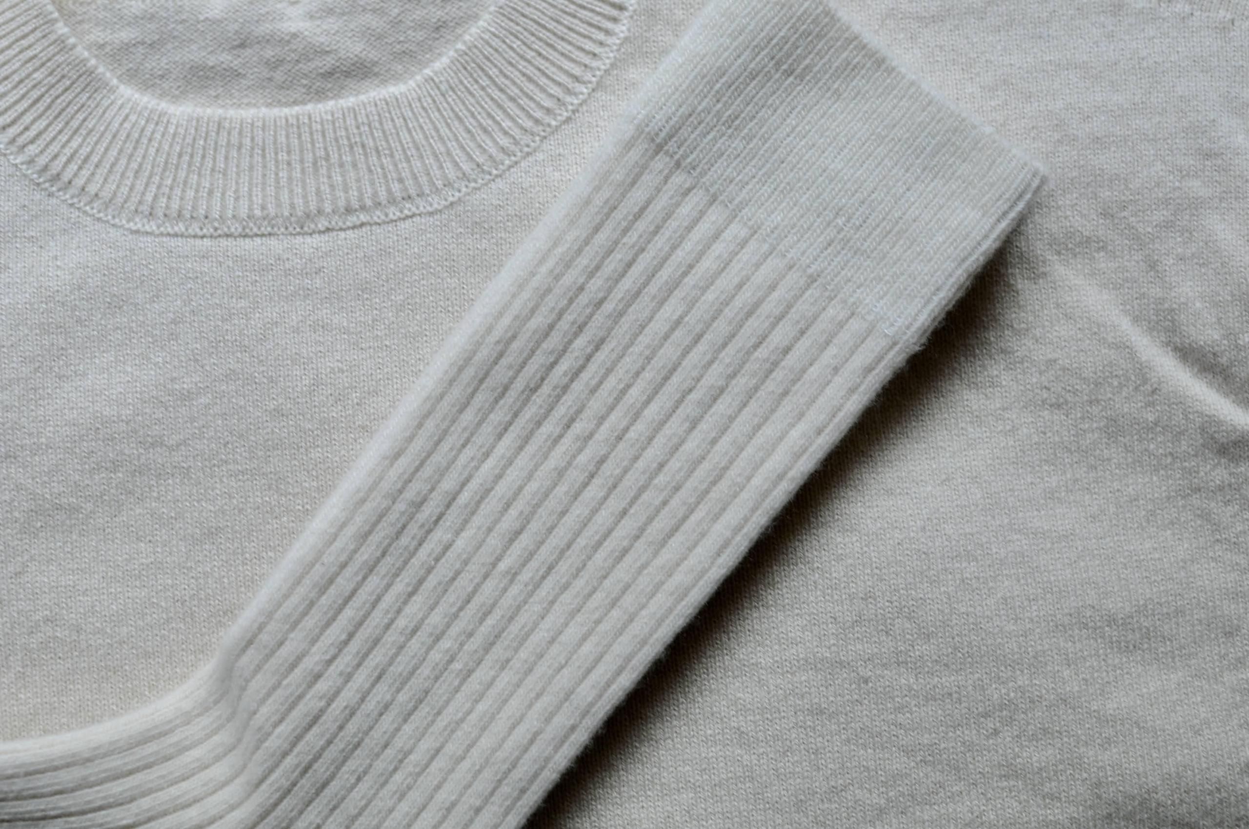 ・この製品は無染色の糸を使用しているため、まれに糸にムラやフシがございますが、お洗濯を繰り返し、風合いが変わるごとに目立たなくなります。無染色ならではの表情の変化をお楽しみ下さい。