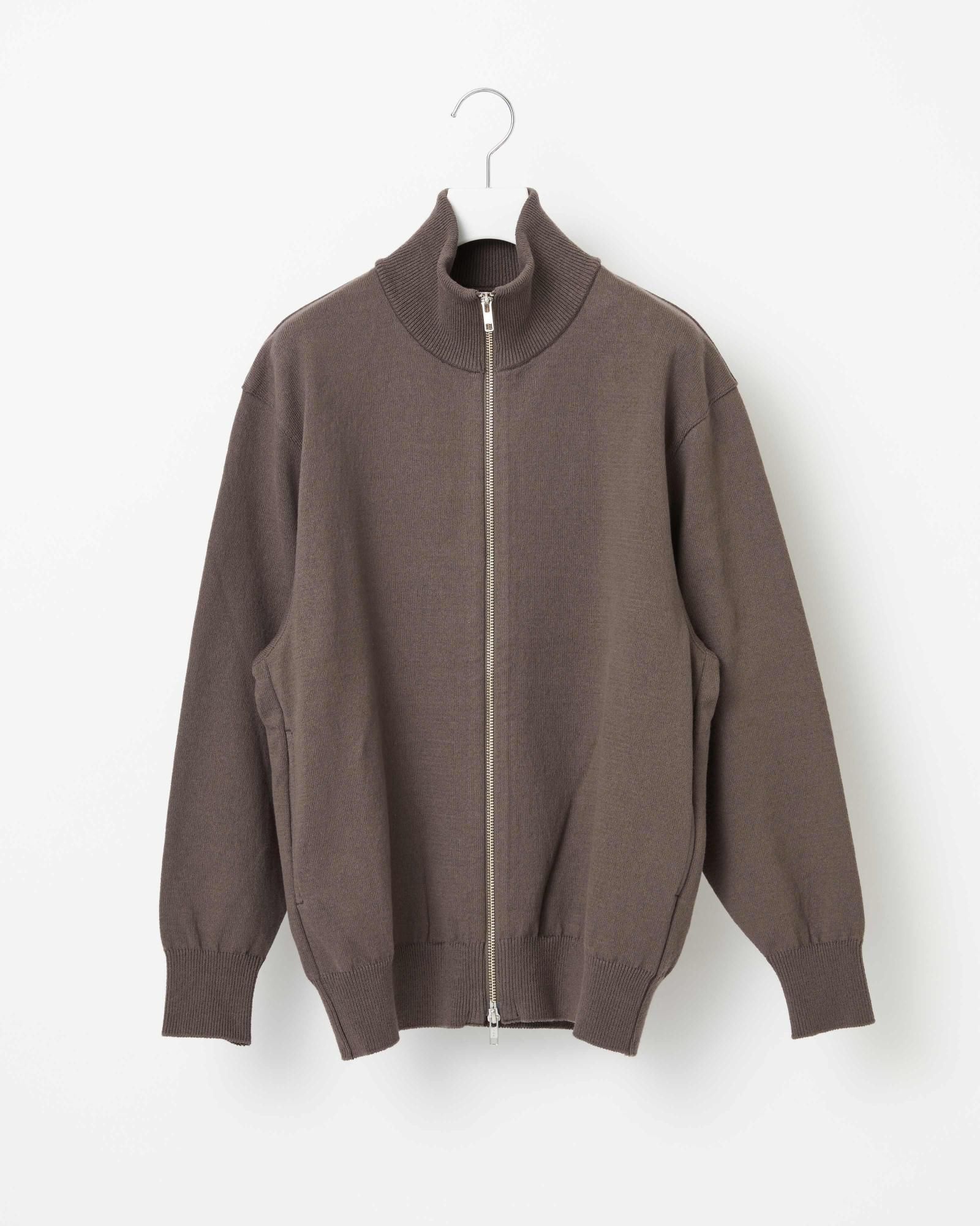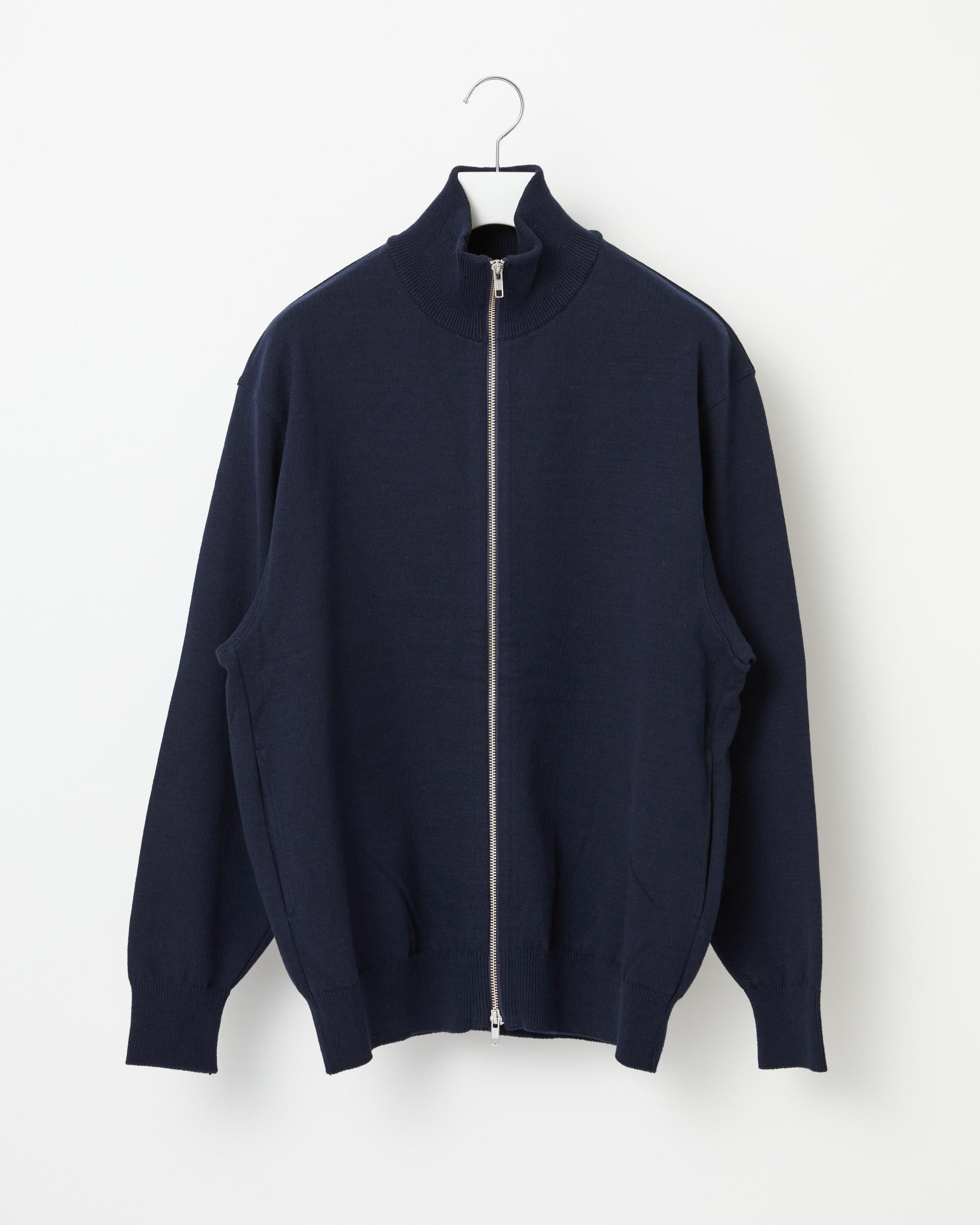 別注強撚ウェーブコットンを度詰めでしっかりと編み立てた、オールシーズン着用できる素材です。 上品なニット素材による、ヴィンテージトラックジャケットのようなボックスシルエットが特徴。