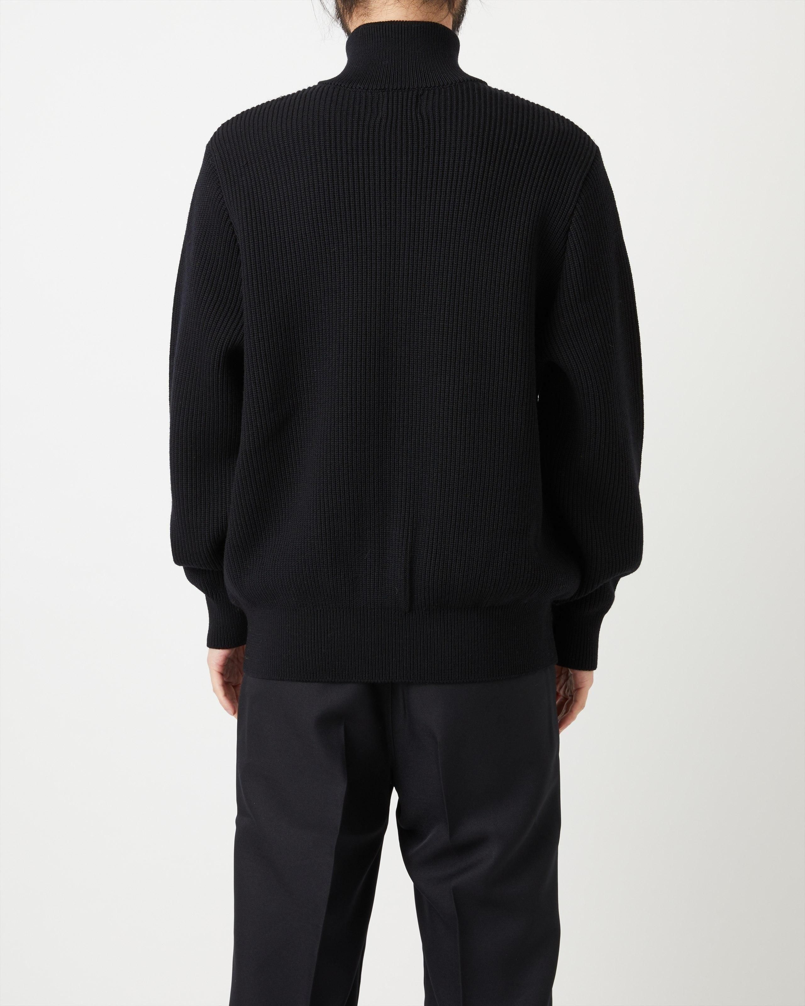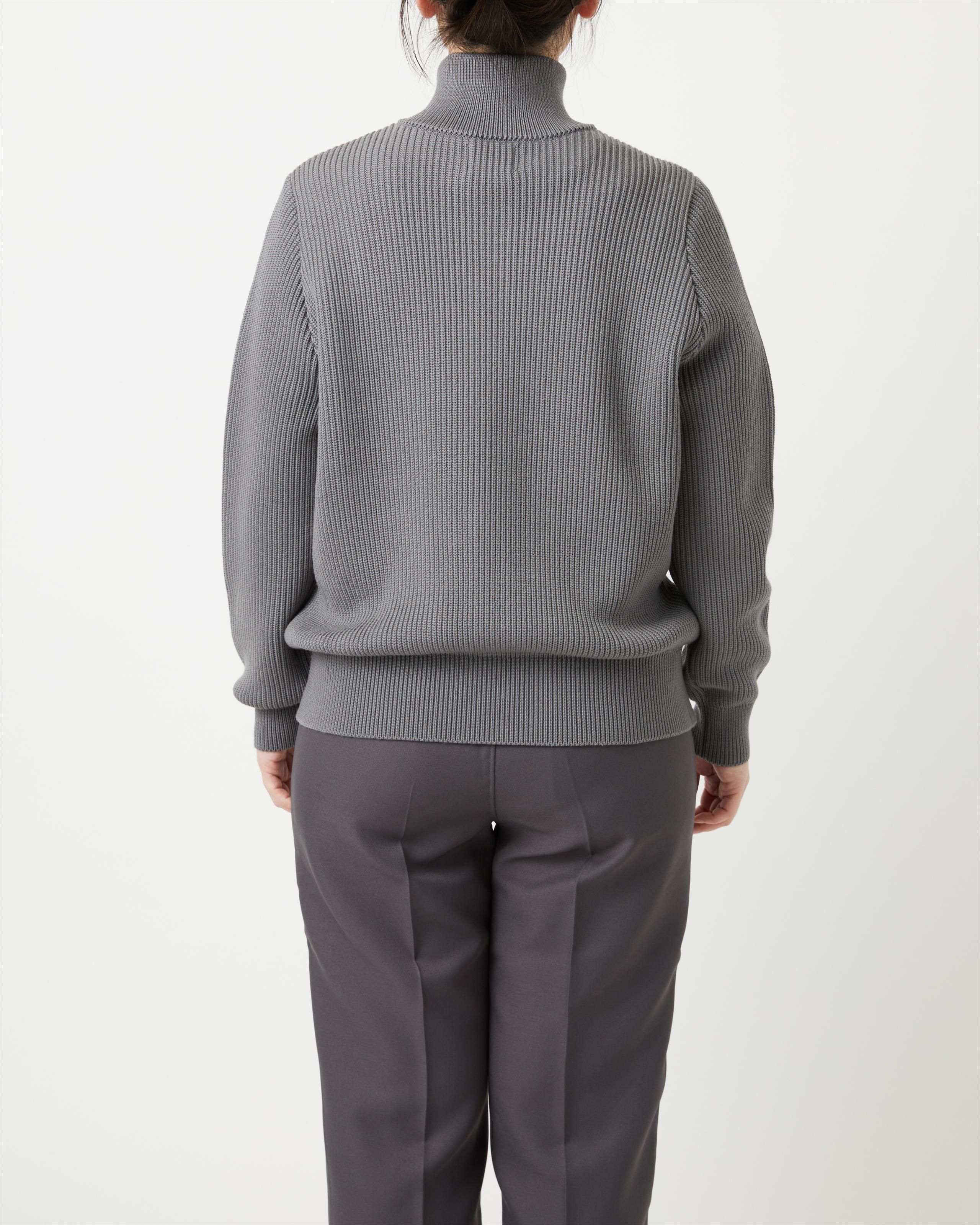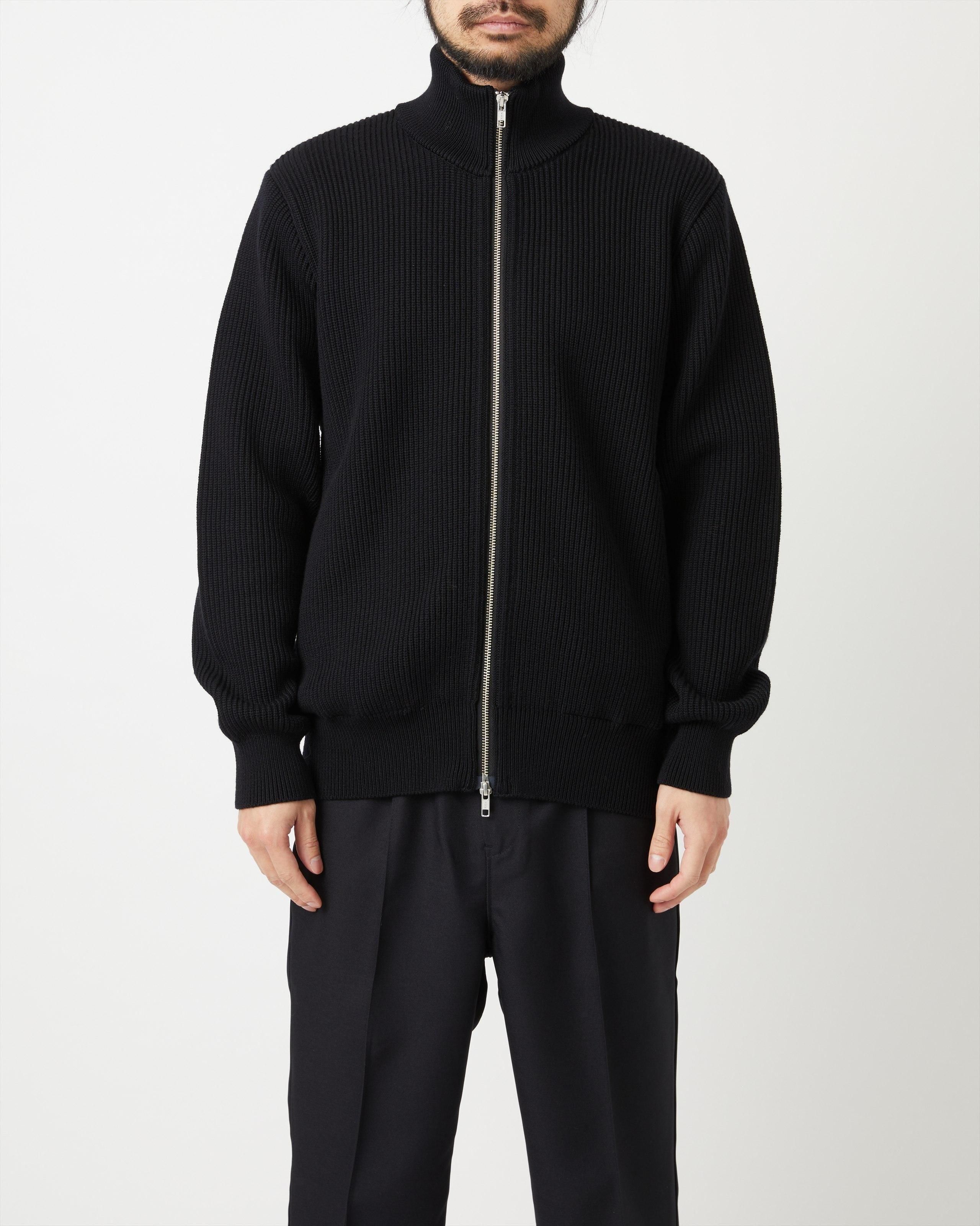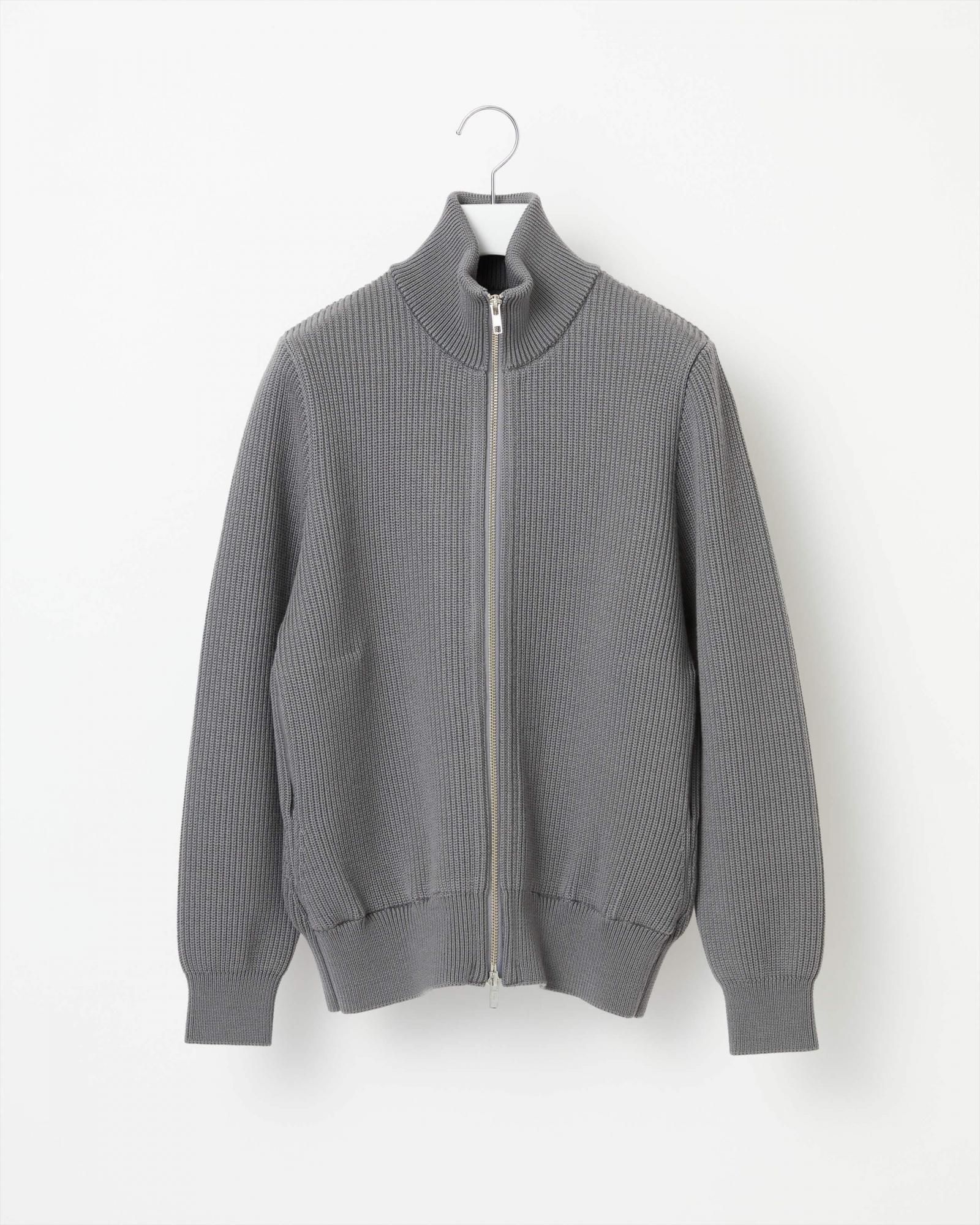 シルクのような光沢とカシミヤのような滑らかな肌触りを持つ高級ウールを、しっかりと編み込んだ畦編みのニットブルゾン。可能な限り装飾を削ぎ落としたシンプルなデザインが特徴。毛玉が起きにくく、ご家庭で手洗いによる洗濯処理ができる汎用性の高い定番商品です。