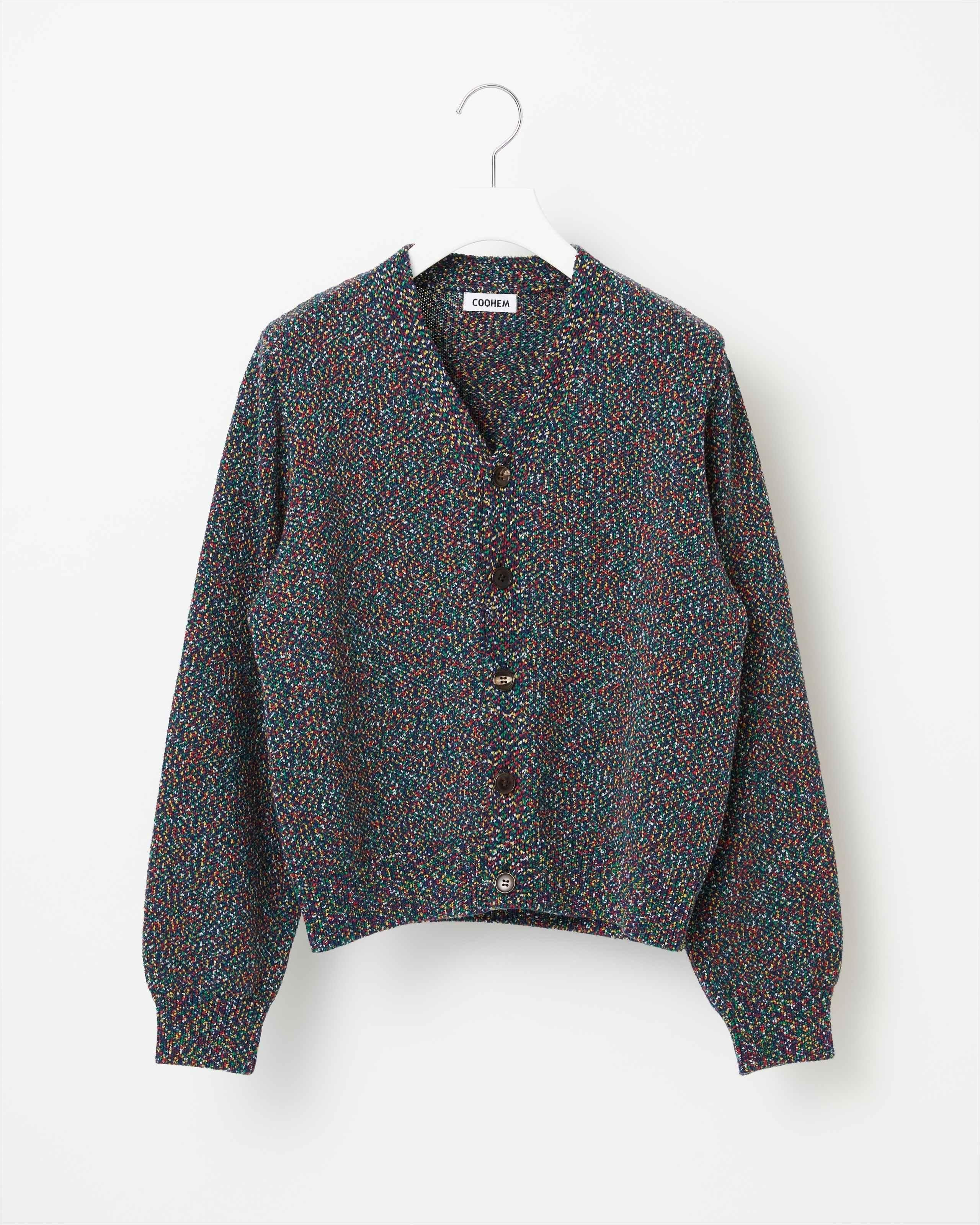 モザイク柄を思わせるマルチカラーの斑点が特徴。高度な染色・糸づくりの技術により、繊細で複雑な表情を作り出しています。 ずっしりとした量感も高級感のある風合いです。