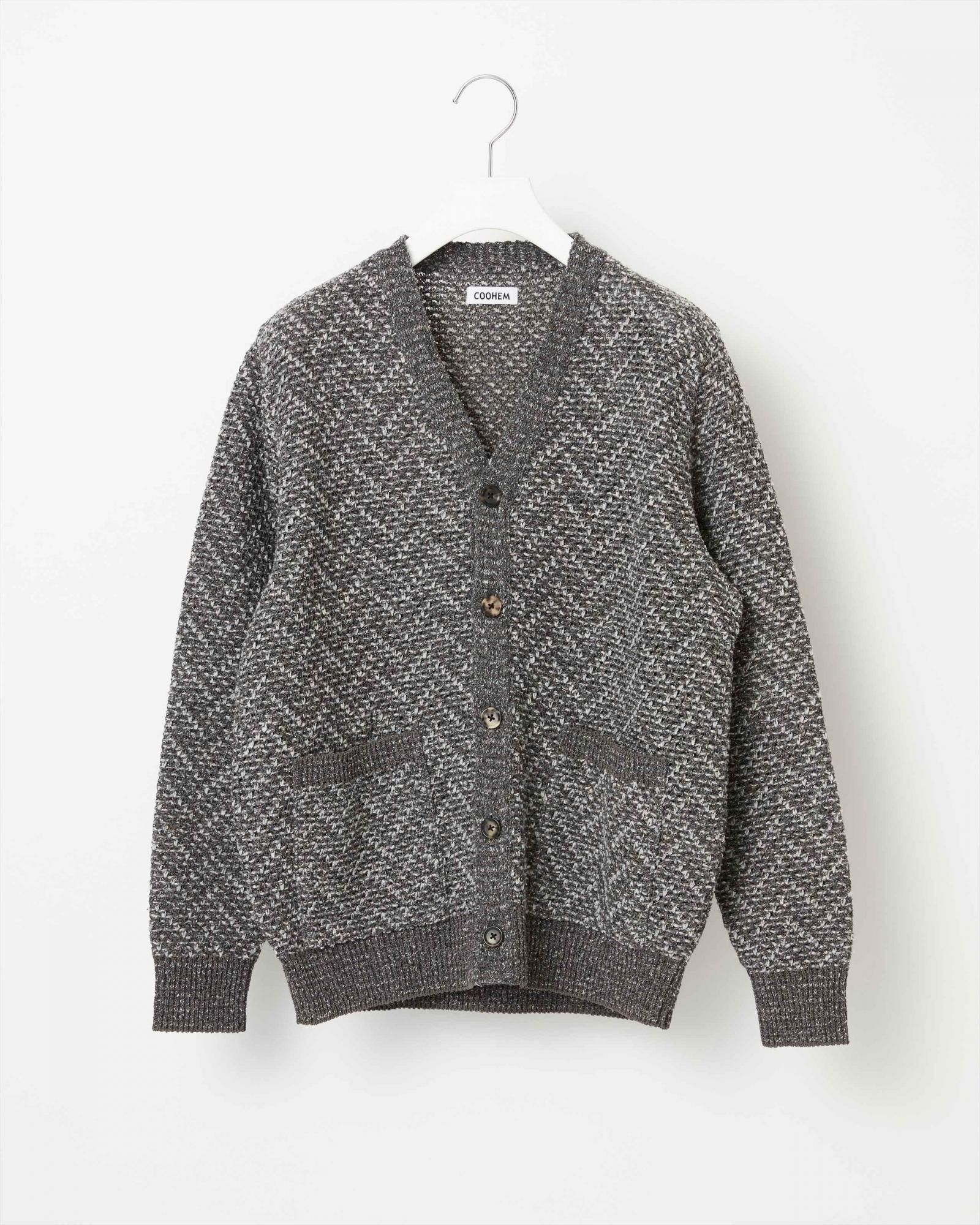 英国調ツウィードをニットで表現、あえてメッシュ風の清涼感のある組織で編み込みました。 軽さとドライな質感で、初秋から着用可能。ヘリンボーン柄が秋の気分を盛り上げてくれるアイテムです。