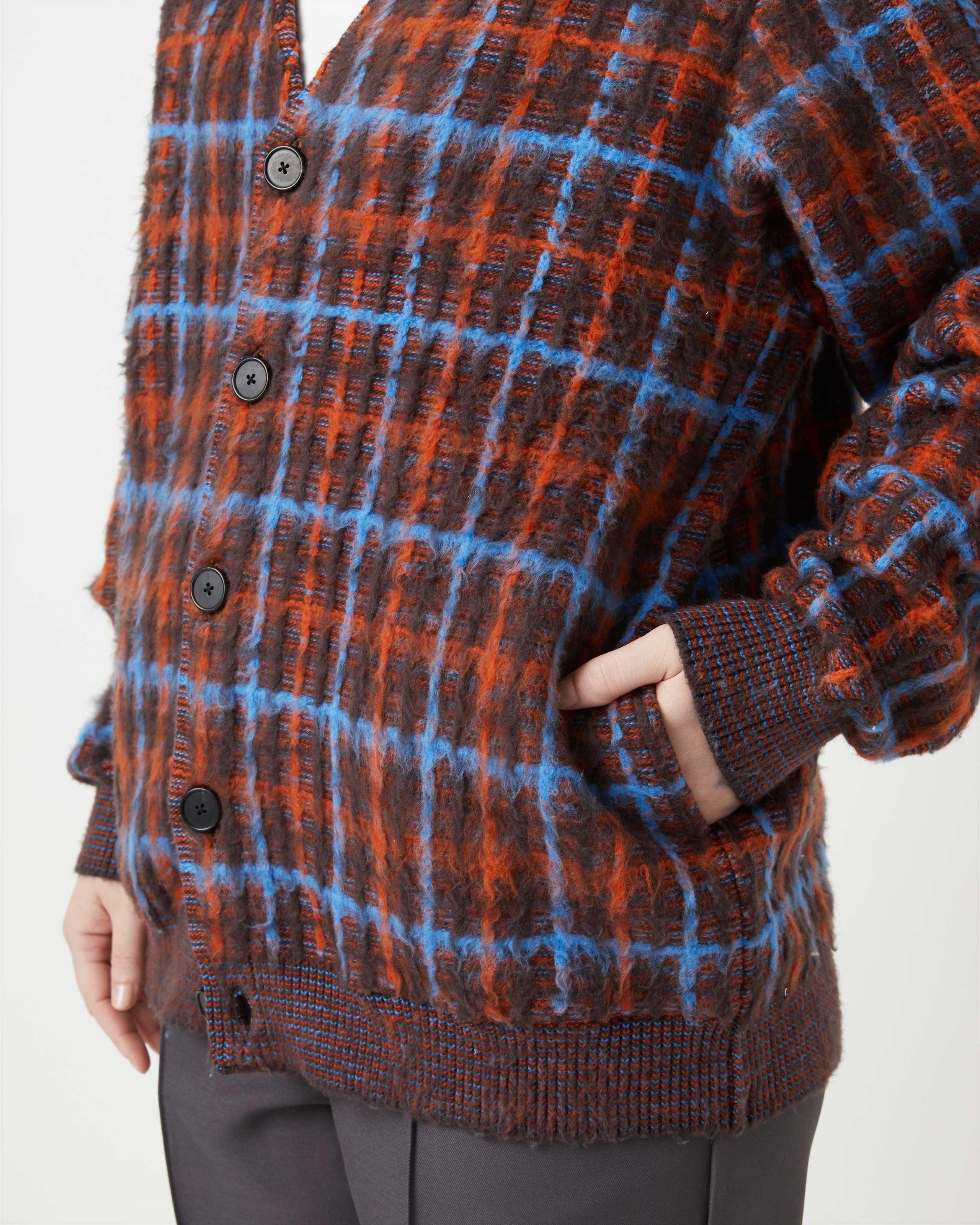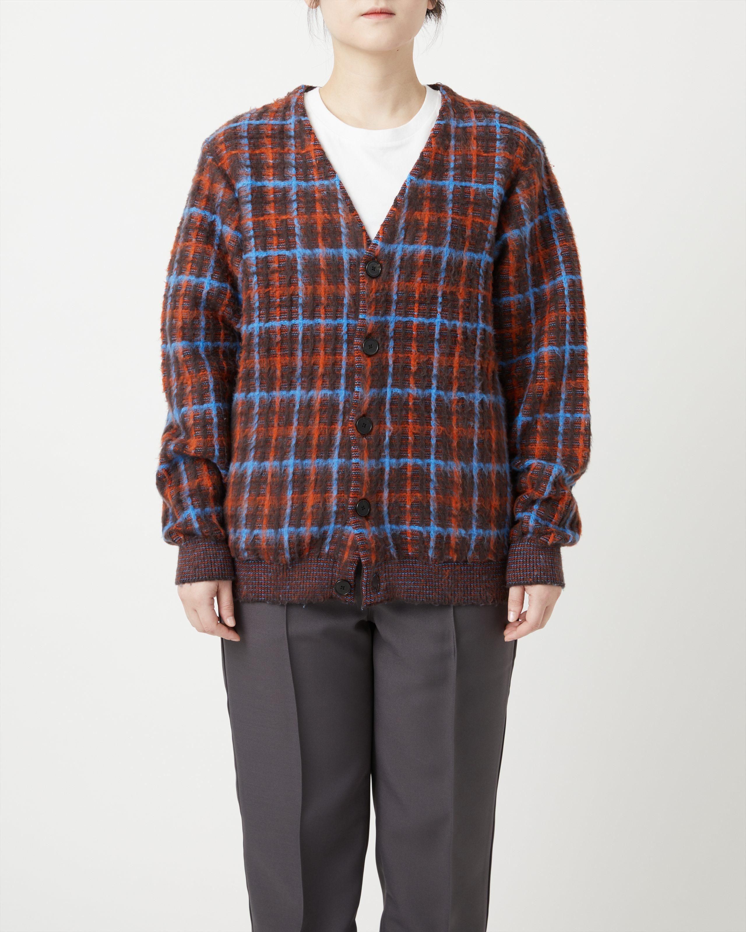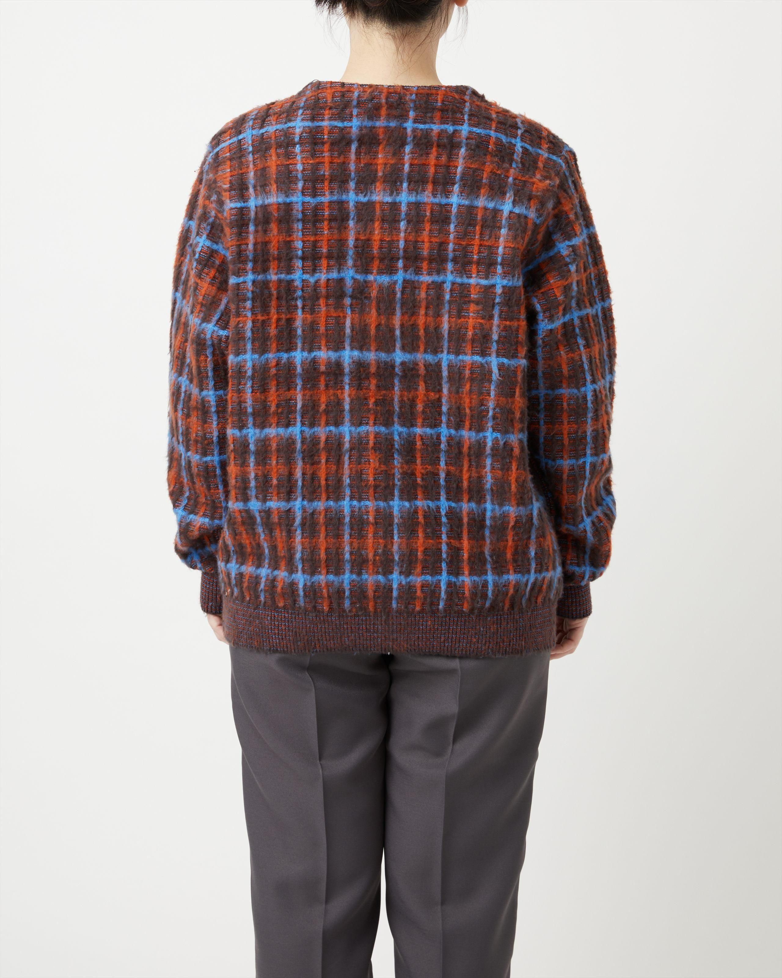 チェック柄のニットツウィードに起毛加工を施し、シャギーなテクスチャーに仕上げたテキスタイル。 甘撚りコットンによる柔らかく滑らかな風合いが特徴です。