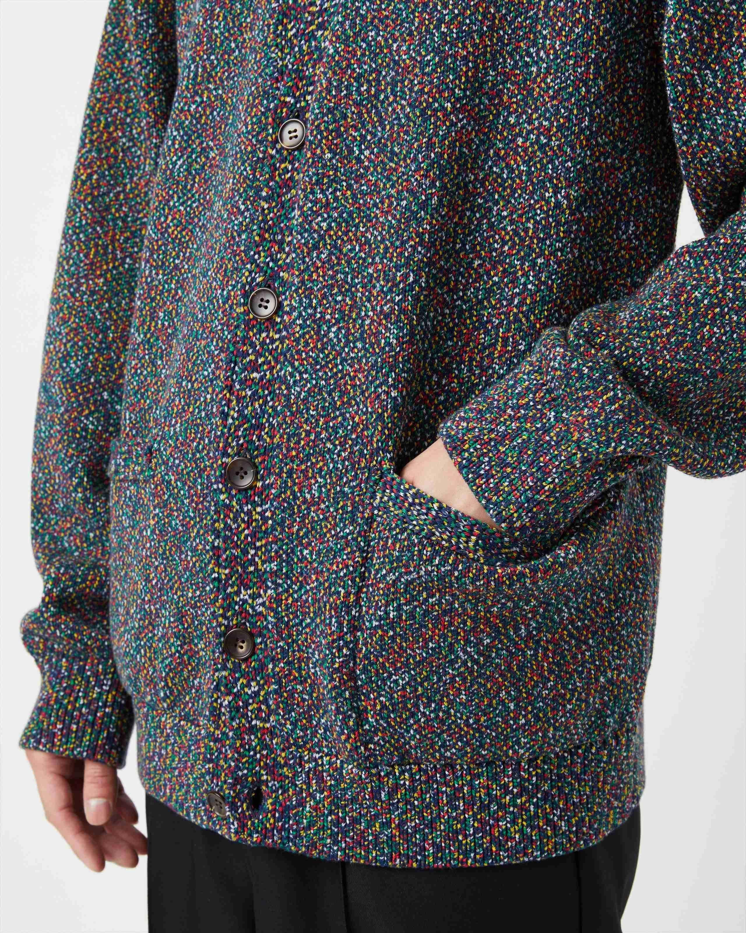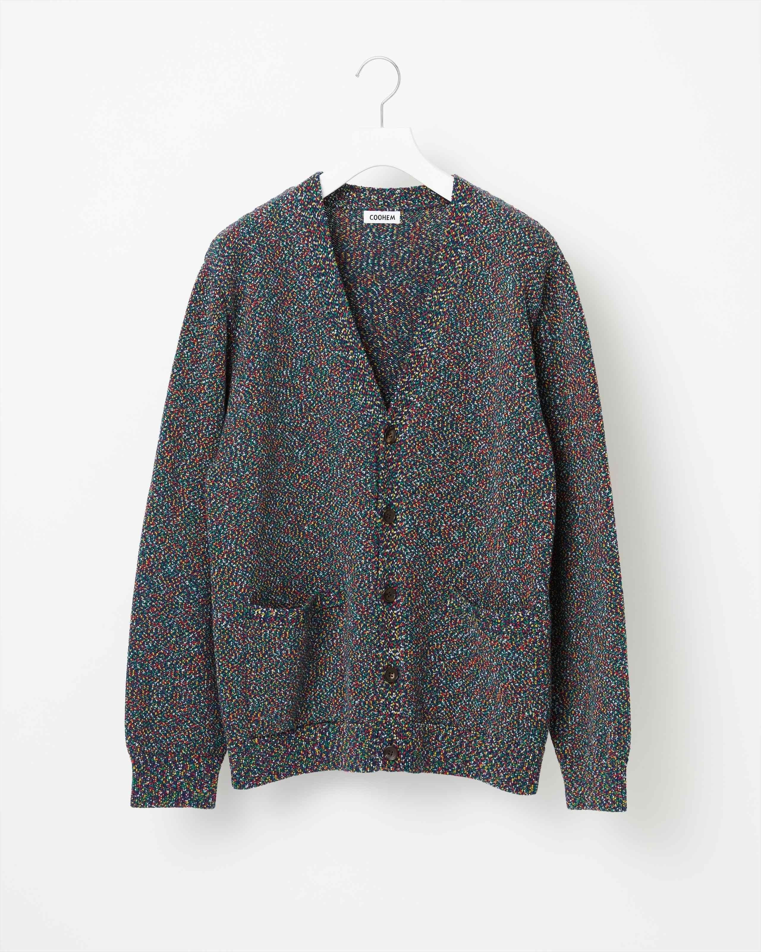 モザイク柄を思わせるマルチカラーの斑点が特徴。高度な染色・糸づくりの技術により、繊細で複雑な表情を作り出しています。 ずっしりとした量感も高級感のある風合いです。