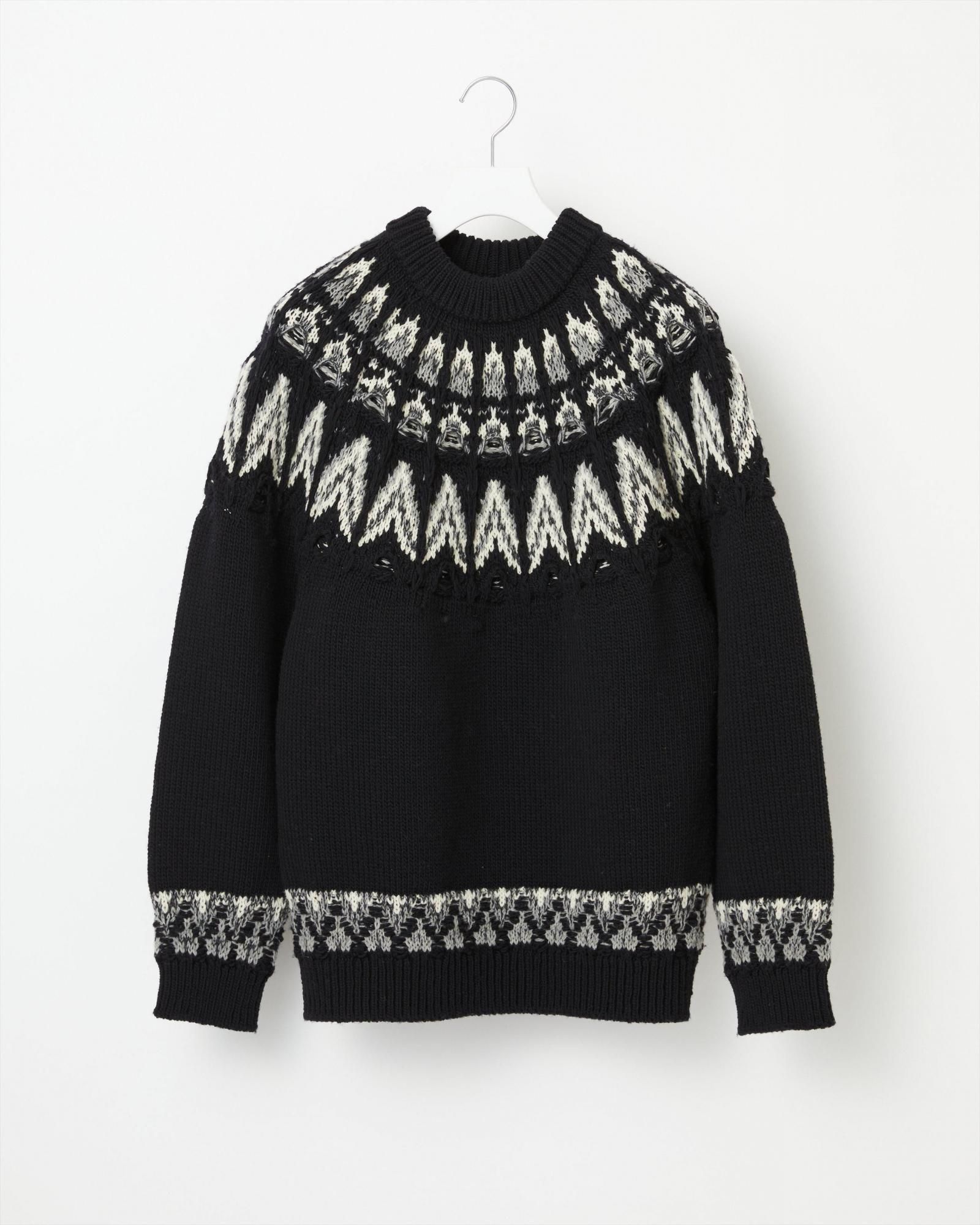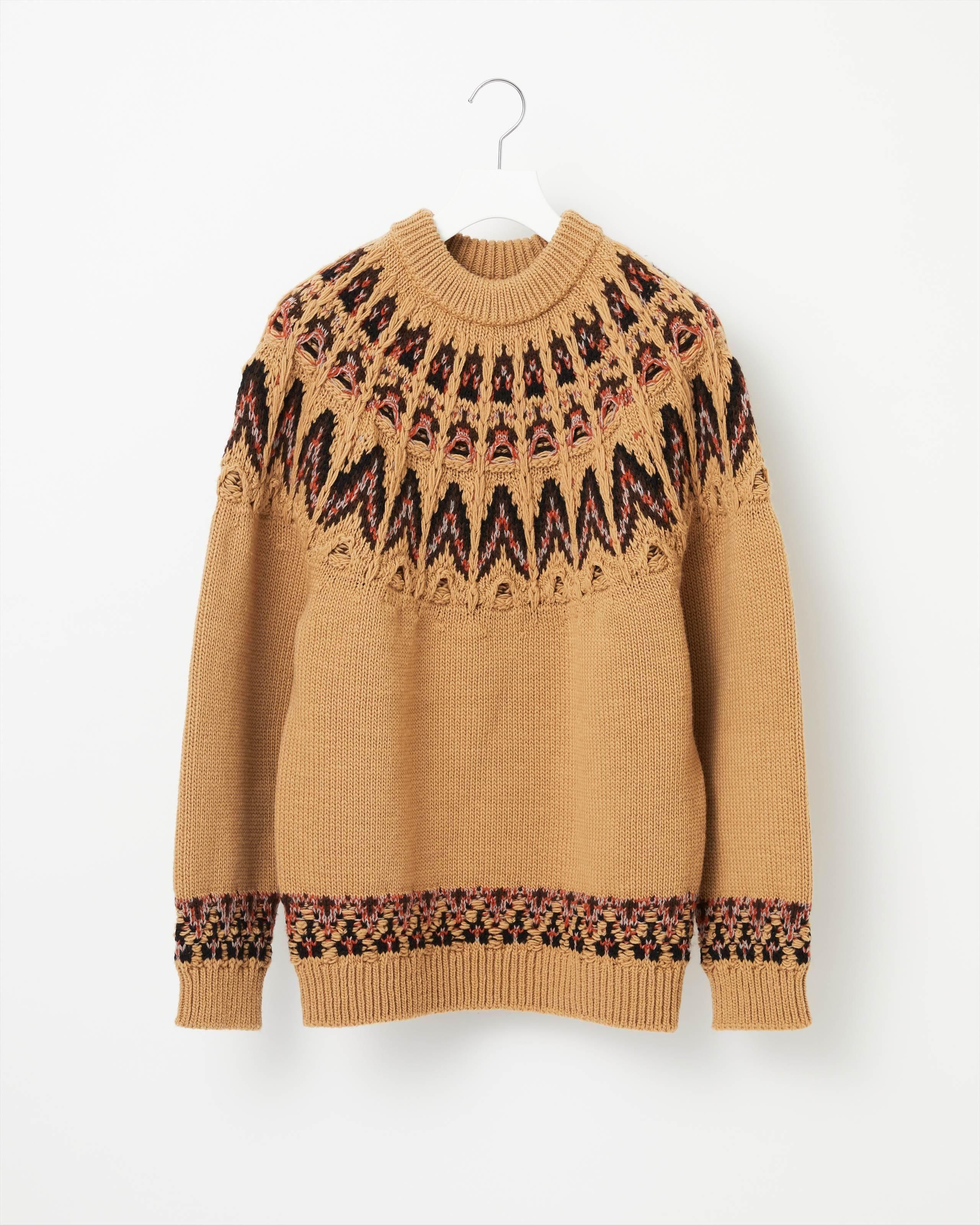 ブランドを象徴するアイコニックピースであるノルディックセーター。 素材は軽さと膨らみに富んだフレンチメリノウール糸を使用。編みの技巧を凝らし、複雑かつ立体的な編み組織によって唯一無二の存在感を放っています。