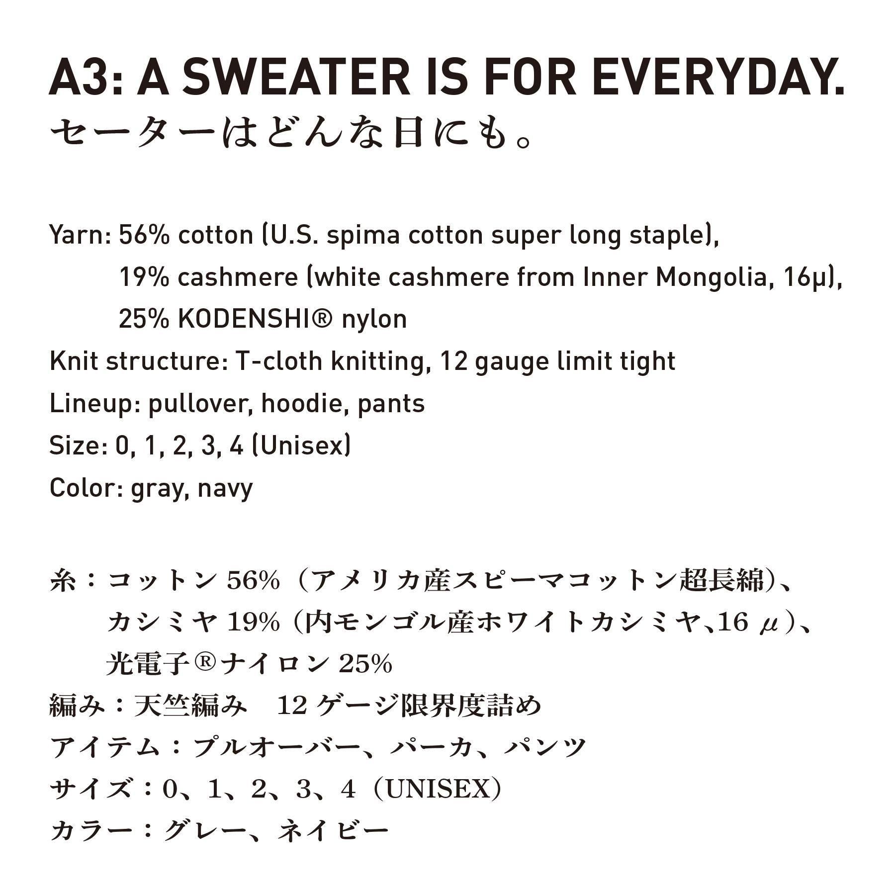 「セーターとは何か?」を問うブランドTHISISASWEATER.が新しく提案する、日常のあらゆるシーンを心地よく過ごすためのニットウエア。光電子®ナイロンをコットンカシミヤでカバーリングしたオリジナル糸を使用。コットンのしなやかな肌触り、カシミヤの美しい光沢、光電子®ナイロンの遠赤外線テクノロジーによる穏やかな保温性といった、それぞれの優れた性質を併せ持つ特別な素材です。おしゃれしたい時も、スポーツをする時も、リラックスしたい時も、どんな日にも寄り添い、身体を優しく包み込んでくれるセーターです。