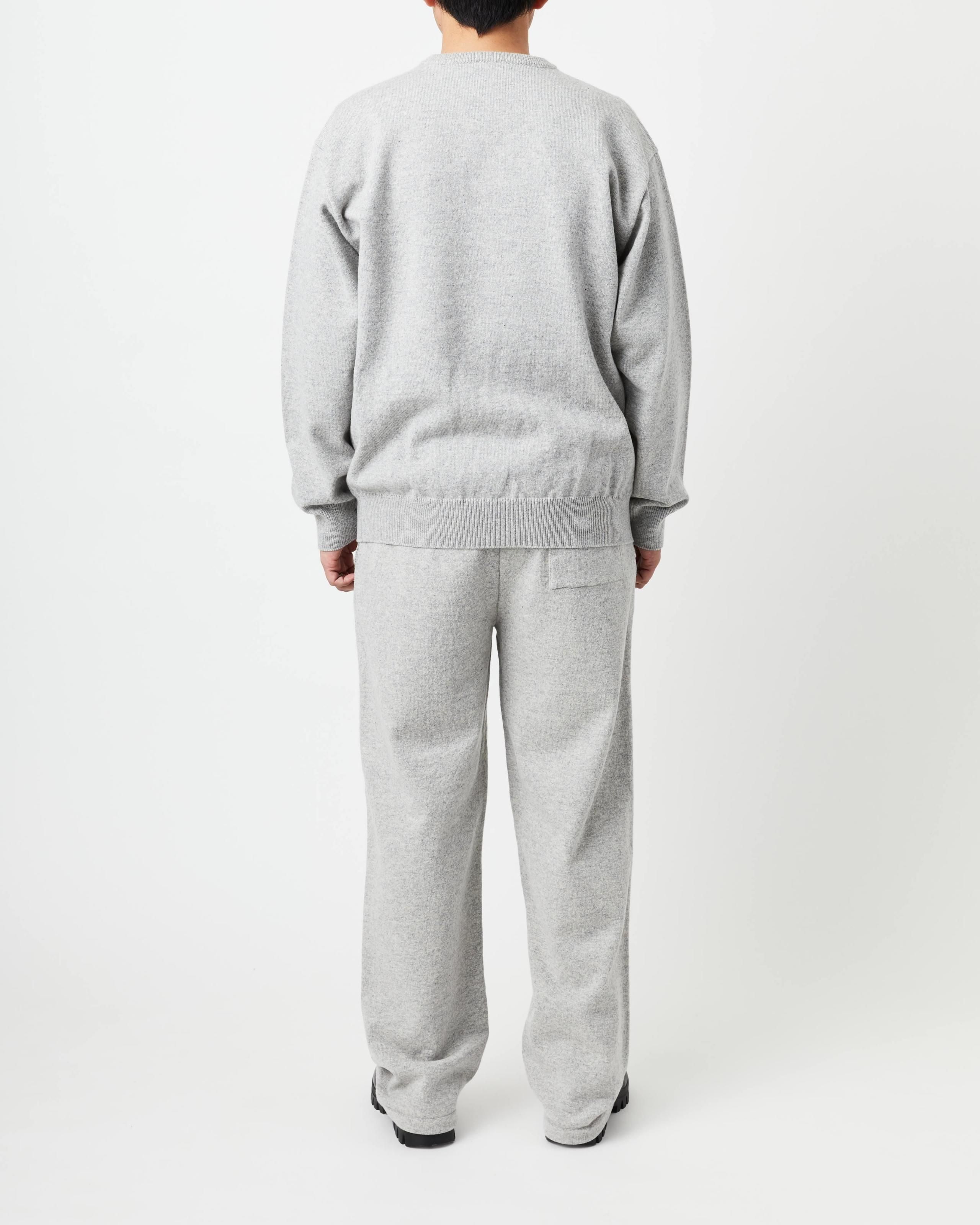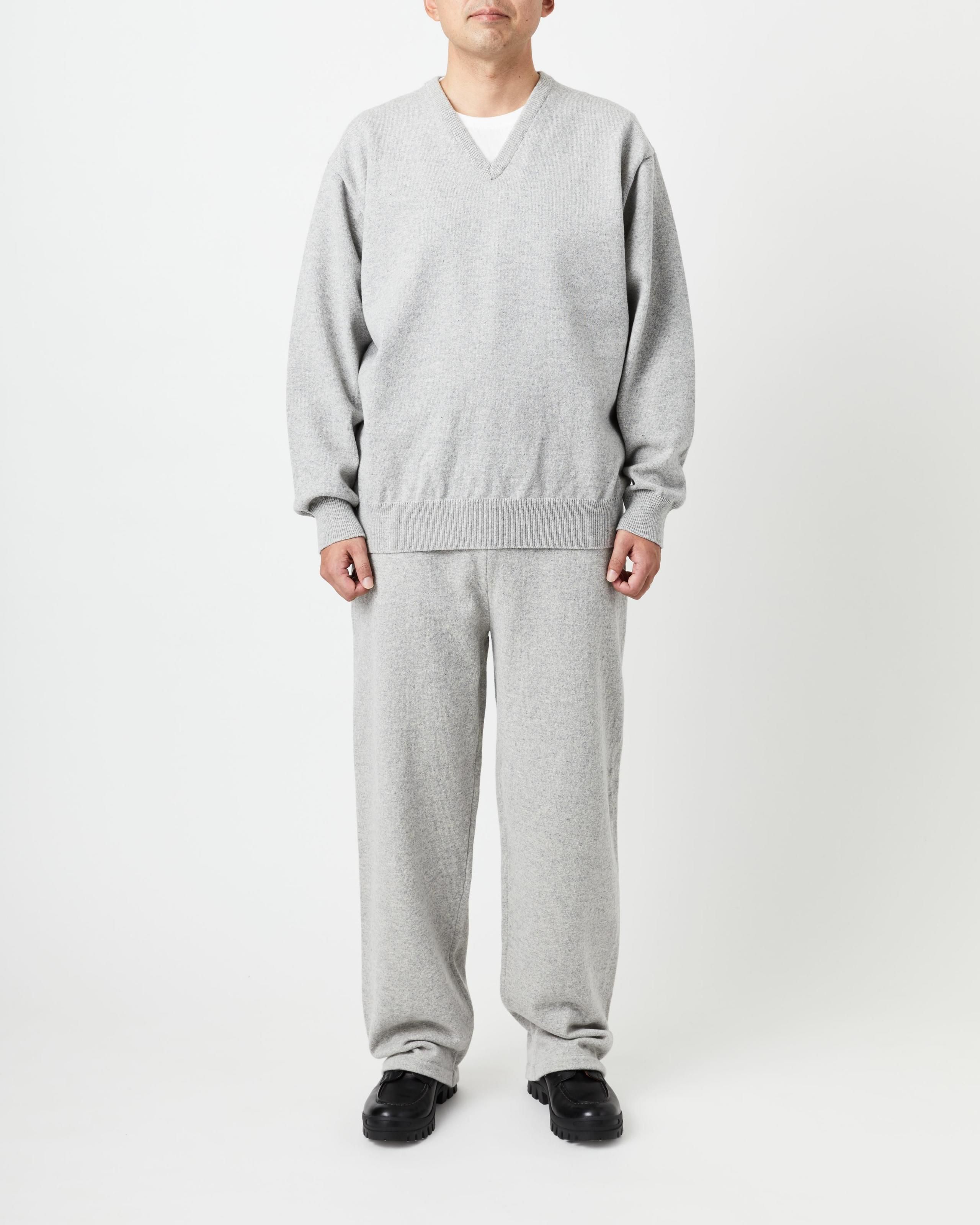 目指したのは、日常で気兼ねなく着れて、着込むほどに身体に馴染んでくる、デニムのようなカシミヤセーター。今回登場したのはニットパンツ。 カシミヤ糸を贅沢に使用し、時間をかけて緻密に編み込むことで、カシミヤセーターのイメージを覆す、硬く丈夫な風合いを実現しています。デイリーに着用いただけるよう、ご家庭で手洗いも可能。シルエットは、ハリのある生地を活かして、ヴィンテージスウェットのようなデザインに落とし込んでいます。