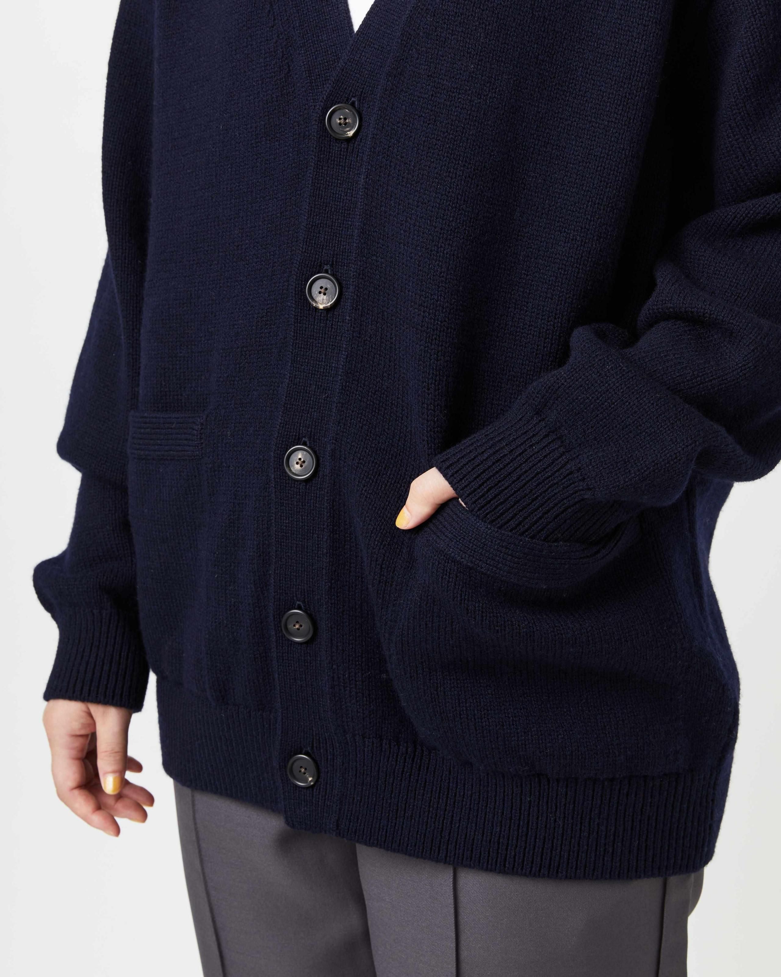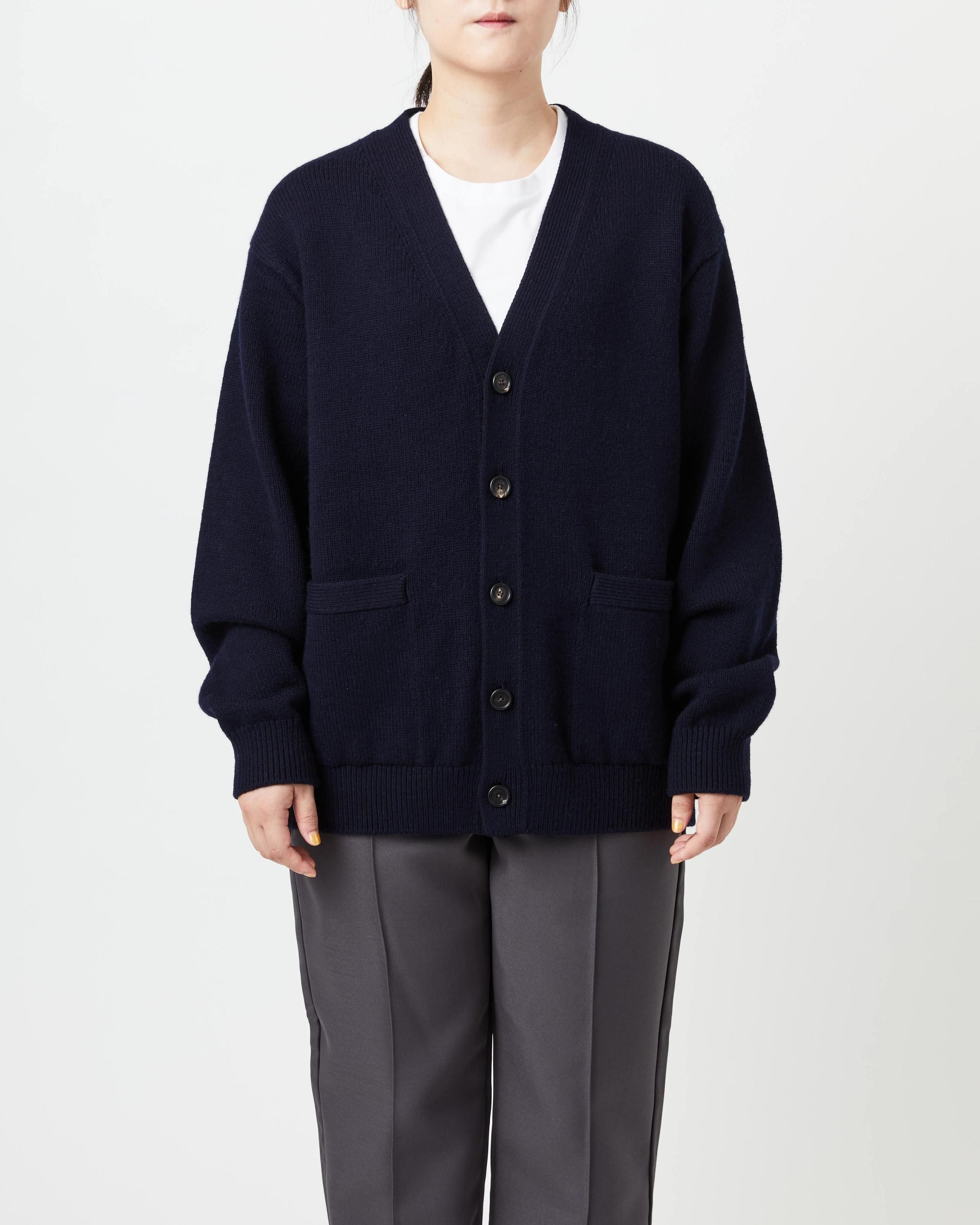 シンプルで上質な、飽きの来ない天竺編みのVネックカーディガン。「セーターとは何か?」という問いに向き合い、形にした、究極の「ふつうの」カーディガンです。フレンチメリノウールとカシミヤをブレンドしたオリジナル糸を使用。ふんわりスポンディッシュでありながら、カシミヤ特有の上質なヌメリを感じられる肌触りです。